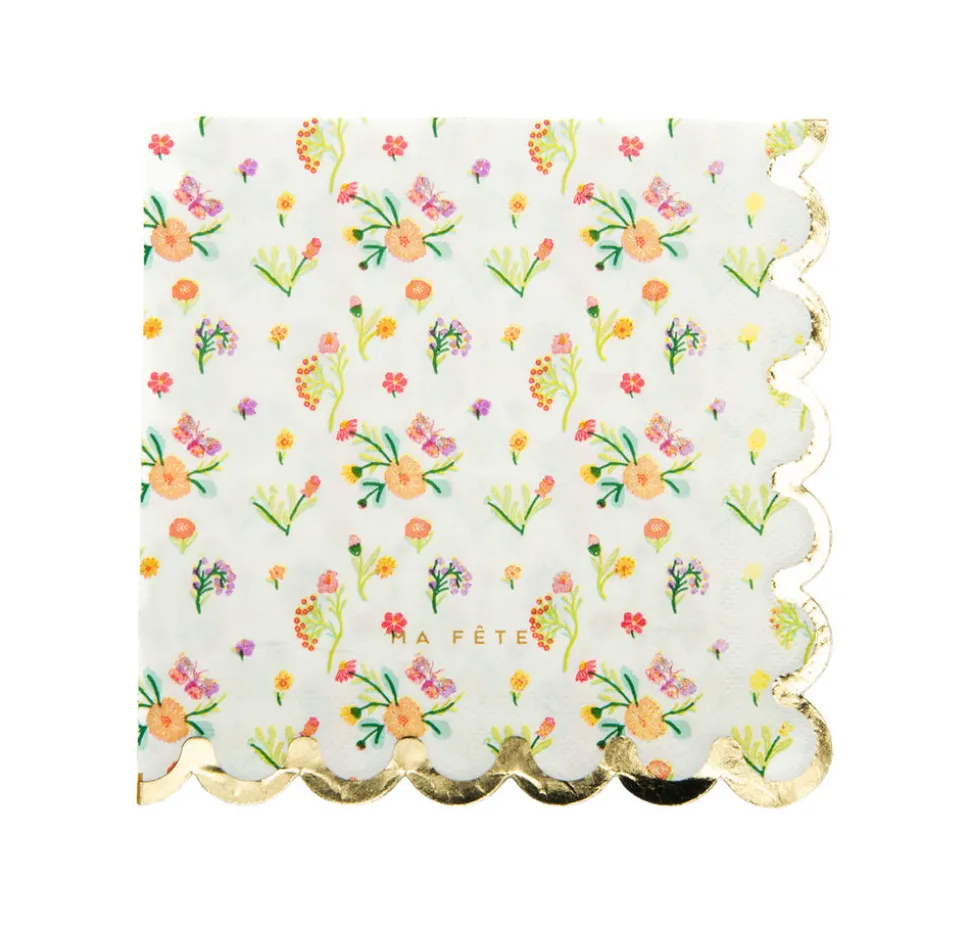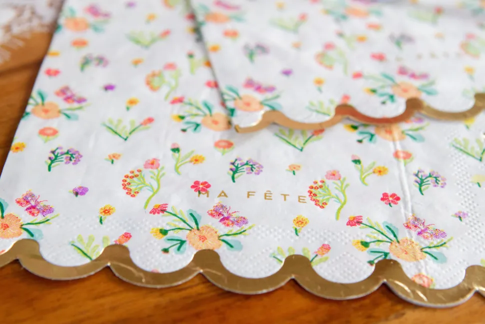 A mom with two young children, Anna Bacon found herself bored with the same old party themes, which is how Ma Fête (“My Party” in French) was born. She creates boxes of matching party materials—plates, cups, napkins and more—with fun, kid-friendly motifs, helping parents throw the most memorable parties, with minimal effort. The Tea Party series adds sophisticated touches to your little one’s elegant celebration. Pair party snacks with pretty floral dinner napkins, featuring gold foil to match the dinner plates and beautiful scalloped edges.