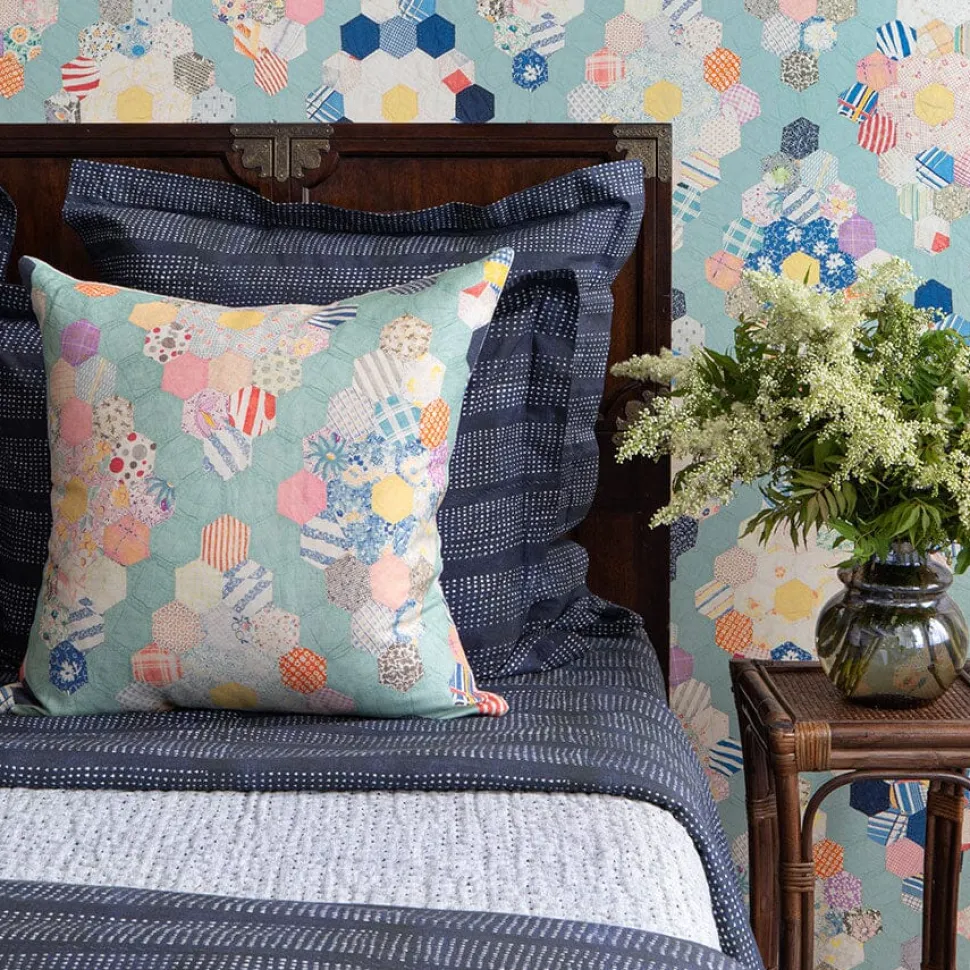 Citing unique origins and ethical sourcing, St. Frank produces contemporary, vintage, and printed homewares that carry with them the cultural history of the community from which it originates. Working with artisans in under-resourced settings, and only the utmost quality materials, St. Frank marries a sophisticated aesthetic with sustainable social change. Teal Diamond Quilt Pillow recalls an American quilting tradition that originated with English and Dutch settlers, and has been passed down through generations and throughout communities. A texturally sumptuous and decorative addition to any room.