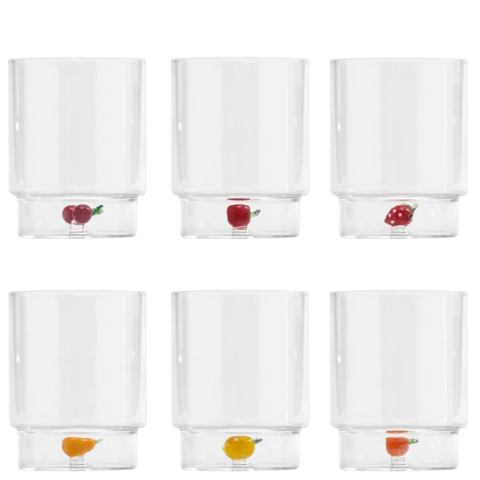 Zafferano lamps and glassware harness centuries of Murano craftsmanship, and hone it through the inimitable vision of Federico de Majo, giving these delicate, finely made pieces modern touches and endlessly stylish flair. The Teca Frutta Tumblers, offered here as a set of six, feature a slender profile and stackable design that make them as practical as they are refined. With their airy proportions and clean lines, they lend effortless sophistication to both everyday use and festive gatherings.