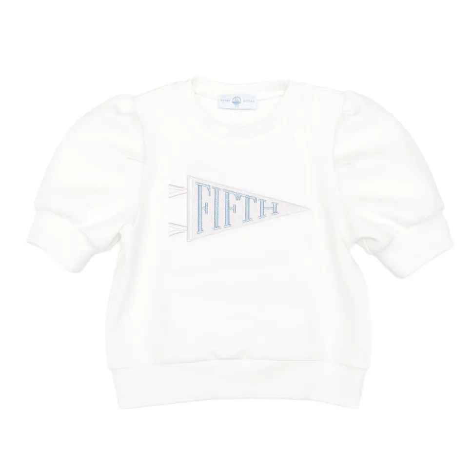 A celebration of the spirit of girlhood, Henry Duvall pieces are playful, practical, and full of personality. The Tenley Tee (Fifth Grade) in 8th Street Ivory is a one-of-a-kind back-to-school shirt designed by girls, for girls. Created through the Henry Duvall Fashion Club with 3rd through 7th grade girls and founder Meghan, this tee was imagined as the ideal first-day-of-school outfit. Made from an ultra-soft cotton blend, this short-sleeve tee features a playful appliqué pennant flag in Pink Sand and Brighton Blue. It’s the ideal match for any of the brand’s back-to-school skorts and brings just the right amount of charm to her school-day wardrobe.