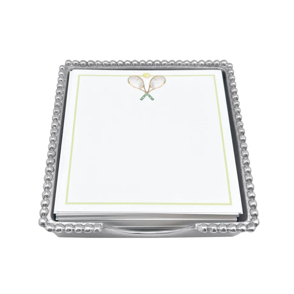 Known for its unique range of decorative homewares, handmade by artisans and notable designers from only recycled materials, Mariposa has been a leader in sustainability and style since its founding in 1983. A collaboration with Rosanne Beck collaboration, known for her fresh, classic, and whimsical designs, the Tennis Beaded Note Pad Set embraces the spirit of the court and your love of the game, while helping keeping you organized.