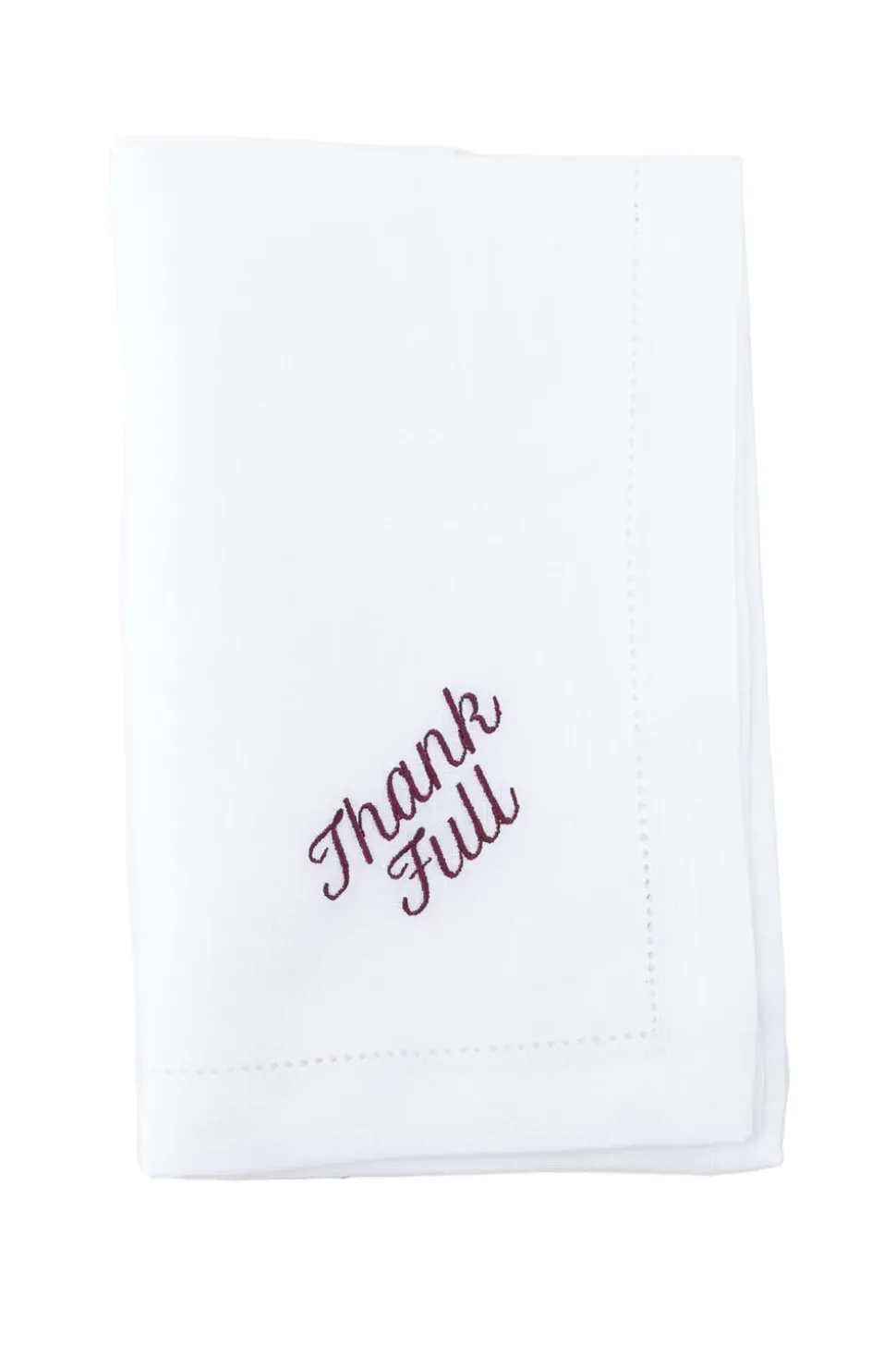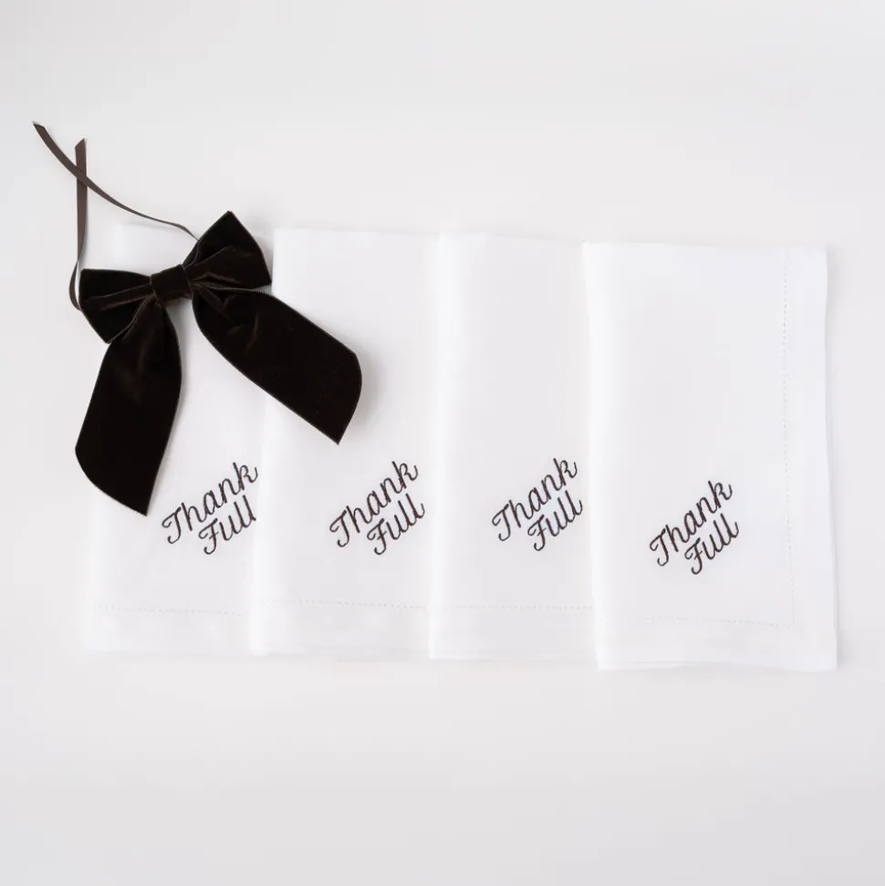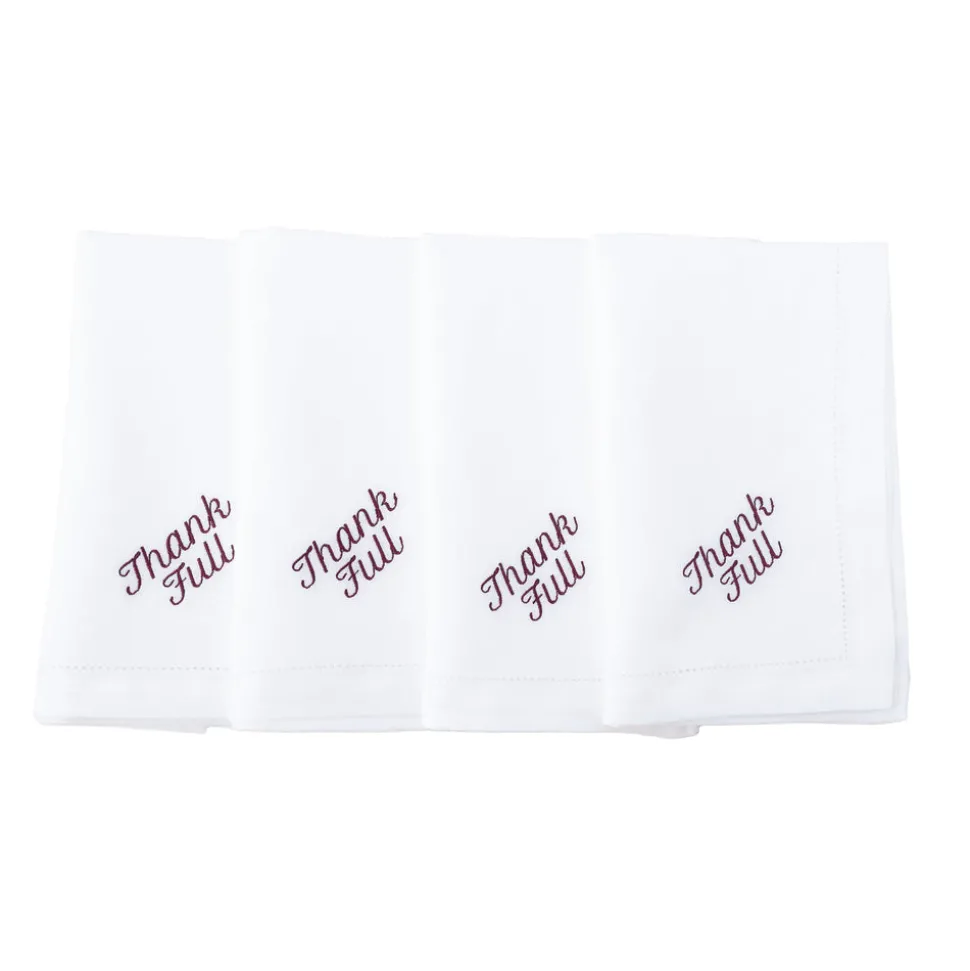 Set of 12. 100% white linen. Embroidered with the phrase “Thank Full.”