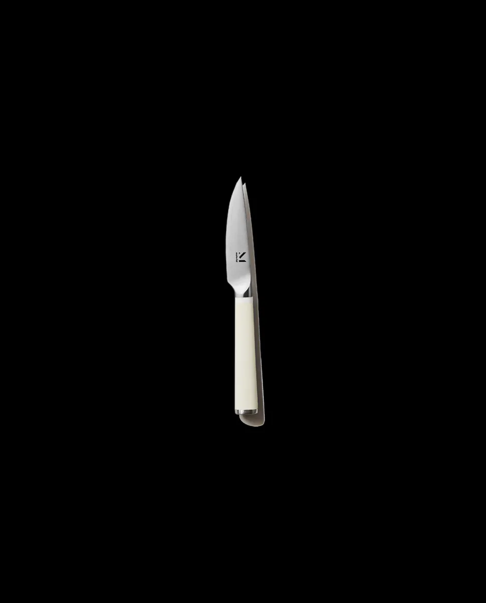 Made for the everyday, but built to last a lifetime, Material Kitchen crafts products to help us tell our stories, and build our communities, through food. With impeccable material sourcing and meticulous design, these products create make a cooking experience that is both successful and joyful. The Almost 4″ Knife is 3.5 inches, precisely. This hand-finished paring knife makes short work of detailed slicing and dicing, thanks to three layers of Japanese steel and a stain-resistant matte handle.