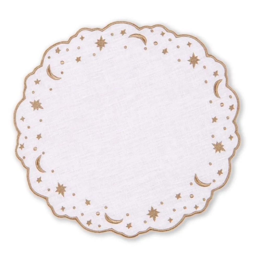 Turn to Loulou La Dune for all your creative linen wants and needs. Based in Istanbul, La Dune is an artisan with an architecture background, and when it comes to her designs, she knows that every color in the rainbow makes for beautiful hand embroidery. The Astral Linen Placemat in White Linen and Gold Embroidery is part of her Holiday collection and will elevate any gathering this season.