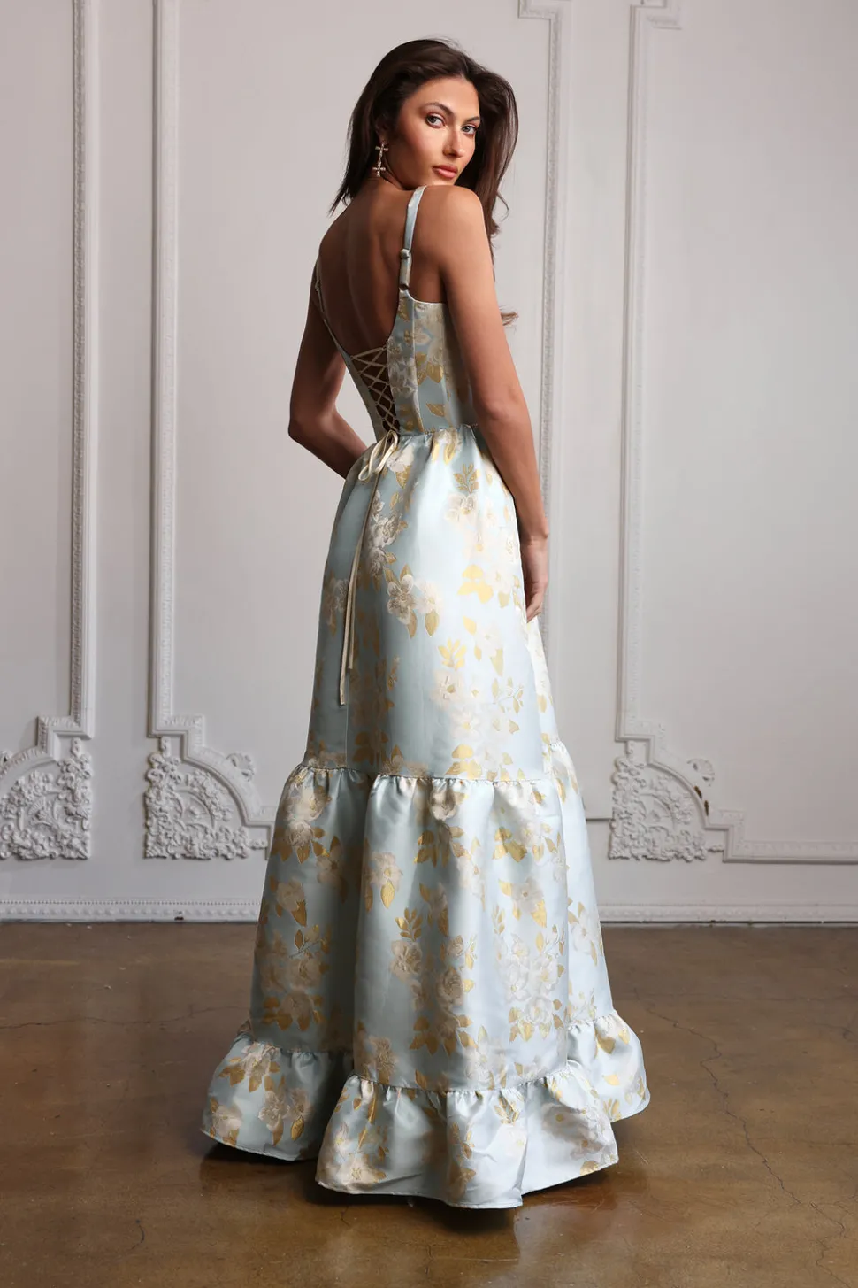 Named for her grandmother who taught her to sew, Victoria Salisbury founded V. Chapman to bring unique, structured, feminine clothing to a new generation of women. Based in Los Angeles, V. Chapman masterfully updates vintage silhouettes with a modern flair and contemporary touches. A beautifully corseted scoop-neck gown with cascading gathered tiers and side pockets, the Avery Dress in Ballad Blue Baroque Floral boasts a classic silhouette and darling floral details. As elegant as party dresses come.