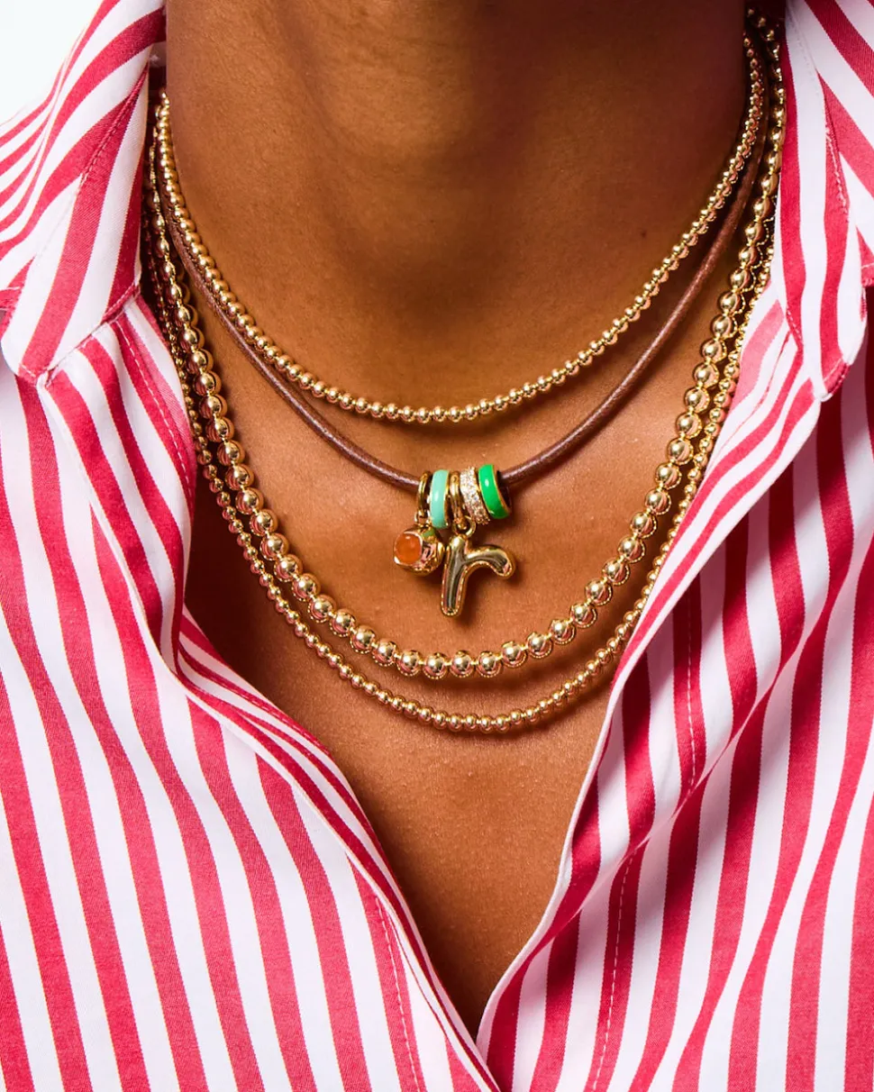 Whimsical, colorful, and crafted with tone-perfect details, Roxanne Assoulin’s four decades of experience—designing for the likes of Marc Jacobs and Oscar de la Renta—are expressed in every piece of her candy-inspired collection of bracelets, chokers, earrings, and more. As the brand likes to say, and as every “it” girl knows, it’s jewelry that makes you smile. The Bigger Bead Necklace in Gold is a bold yet versatile piece, offering a playful update to a classic beaded strand.