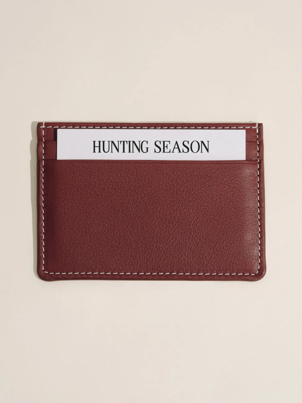 Every Hunting Season collection includes a selection of woven handbags crafted by female artisans in Colombia, furthering the brand’s mission to promote heritage craft to a luxury level while supporting the livelihoods of fellow creative women. The Card Holder in Deep Red is a refined everyday essential crafted from smooth nappa leather with contrast stitching. Discreet yet elevated, its slim profile slips easily into any bag or pocket, keeping cards and essentials organized without adding bulk.