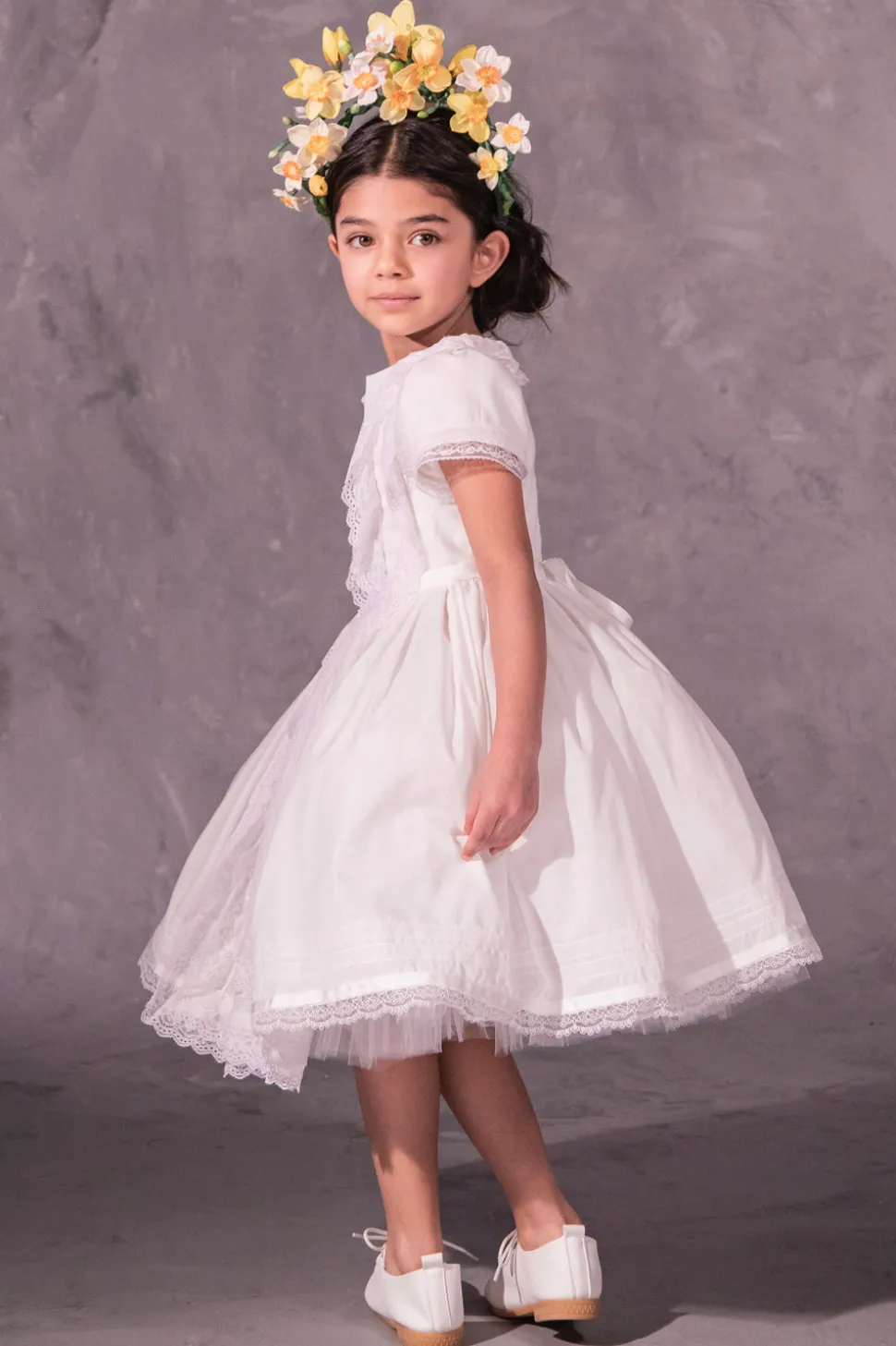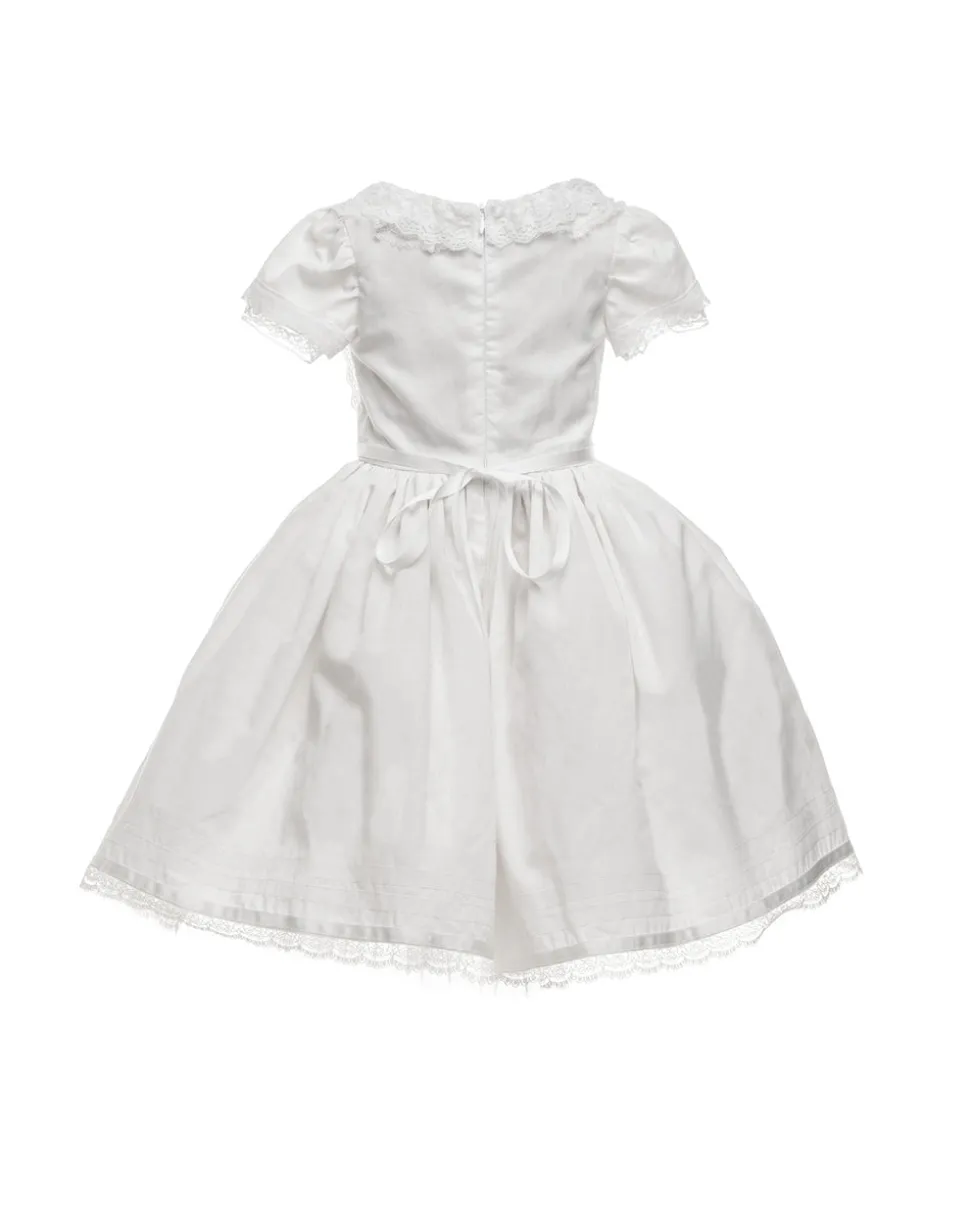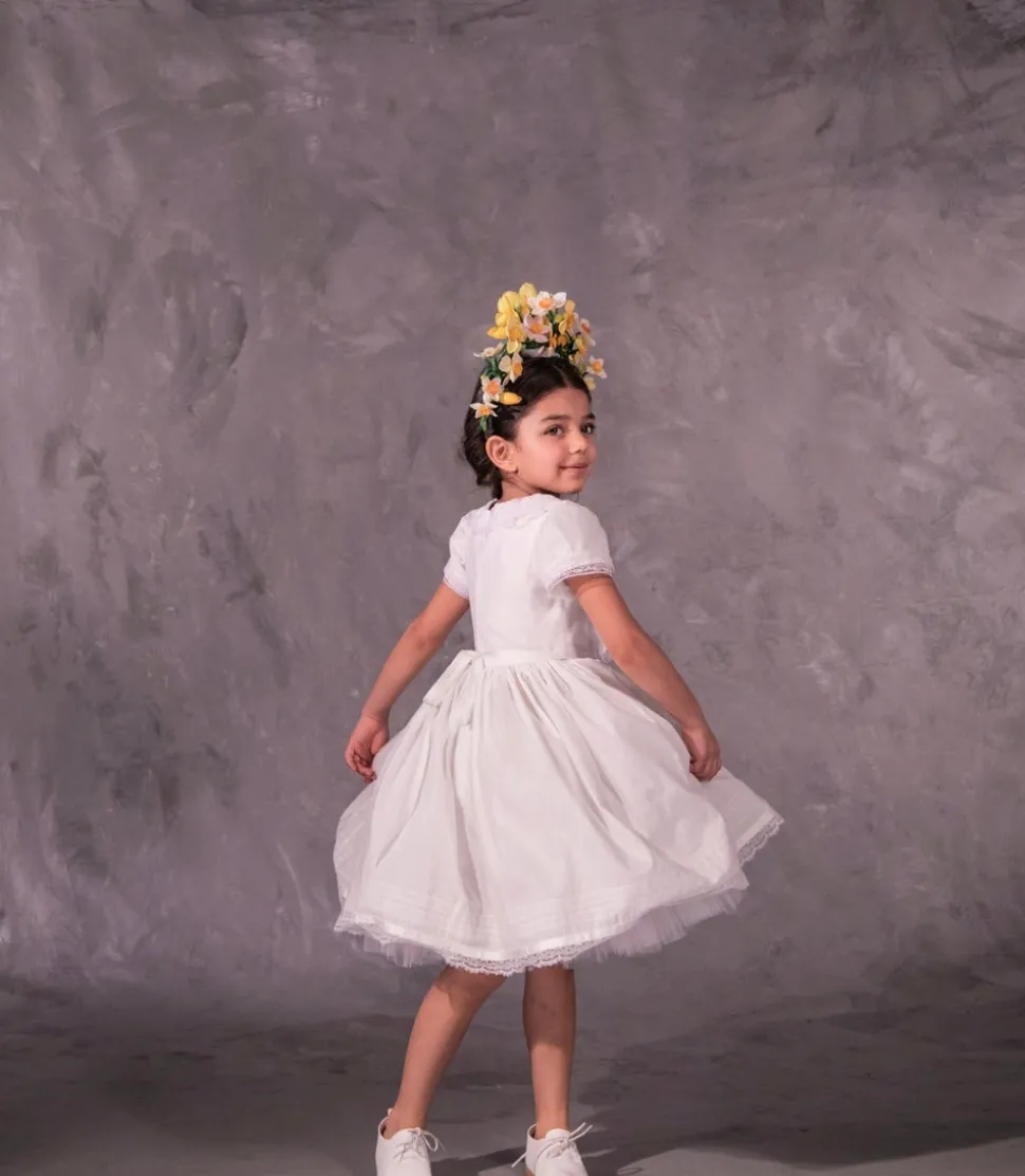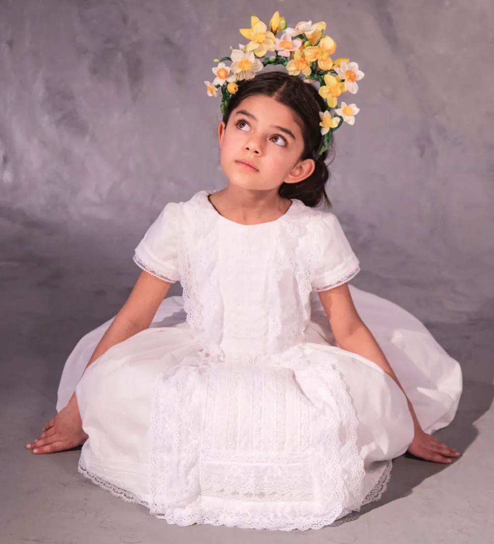 Doloris Petunia creates a made-to-order luxury experience for any child’s most special occasions. Designed in Brooklyn, this brand celebrates childhood with a modern aesthetic and couture detailing, helping children explore who they are and bring their dreams into being. The Clementine in White is a provincial charmer. Reminiscent of a classic European countryside wedding, this lightweight cotton batiste dress is accented with lace trims throughout the delightful silhouette.