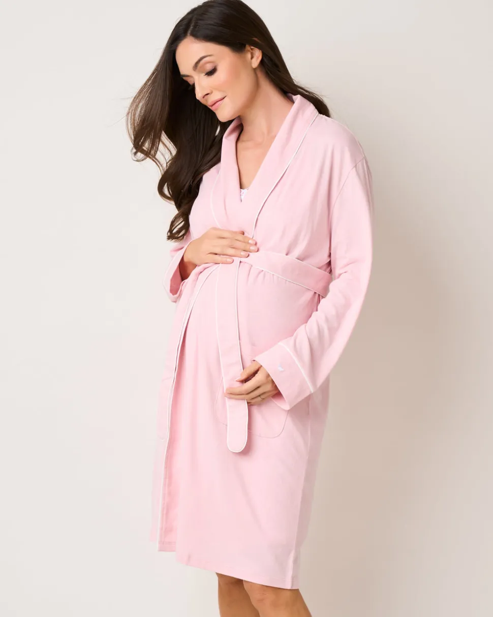 Petite Plume wishes you a “bonne nuit,” and in their luxury sleepwear, it’s hard not to oblige. Crafted from the softest 100% Pima Cotton with a gentle stretch, the Cozy Maternity Set in Pink is a must-have for new and expecting moms. This comforting trio includes coordinating pants, cami, and robe, that will envelop you in relaxation. This set arrives in the signature gift box for a beautiful gift presentation.