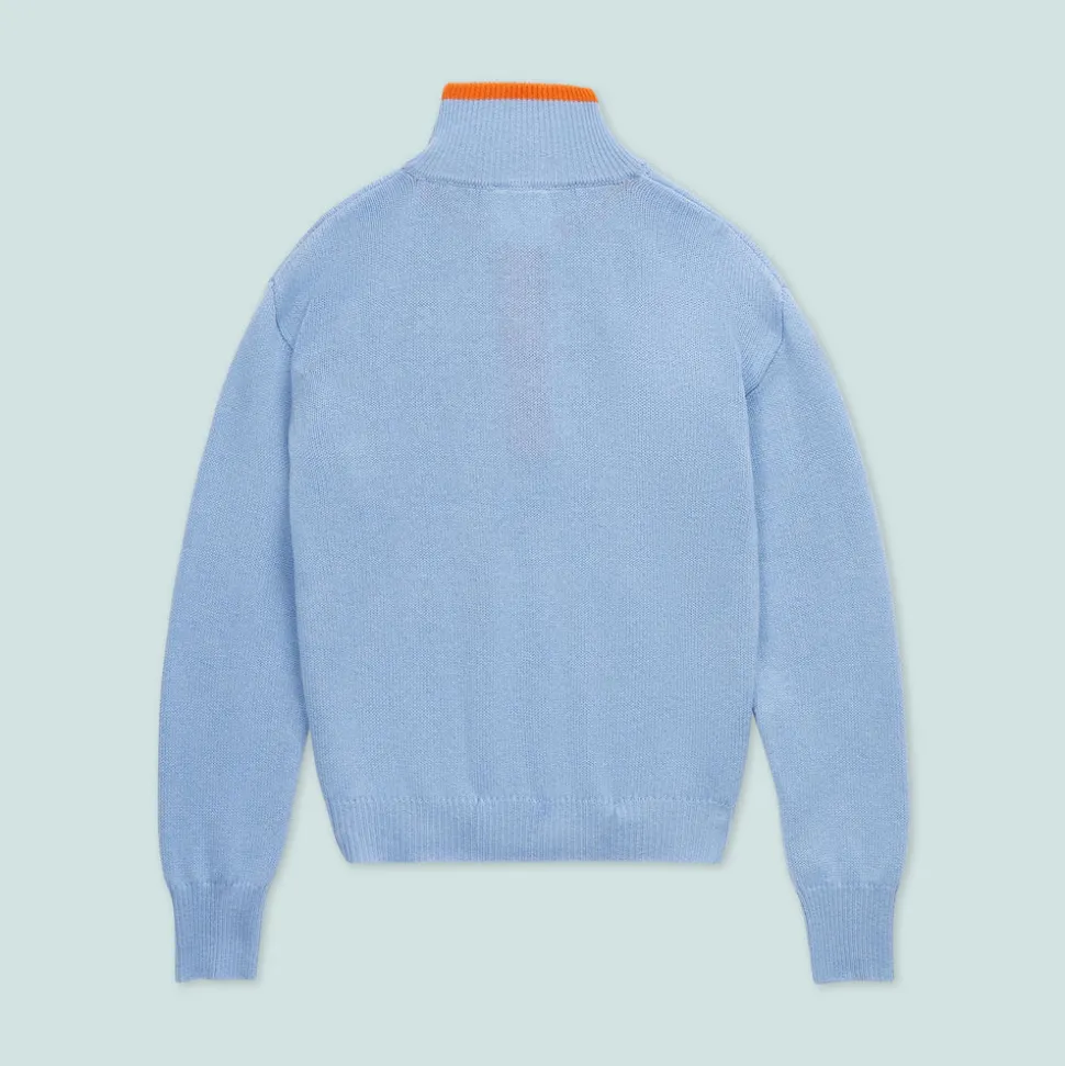 Sourcing its cashmere from wild goats indigenous to Mongolia’s Gobi Desert, Garin crafts apparel that is both eco-friendly and animal-friendly. While their pieces are cool, high quality, and long-lasting, every element is biodegradable, including the packaging, which supports the brand’s creed of “cashmere with a cause.” With menswear vibes and carefully contrasting color blocked solids, the Diana Sweater in Lisboa Blue and Jaffa Orange is a vintage-inspired look with details that make it easy to dress up or down, like functional buttons on the collar, and fine ribbing at the hem and cuffs.