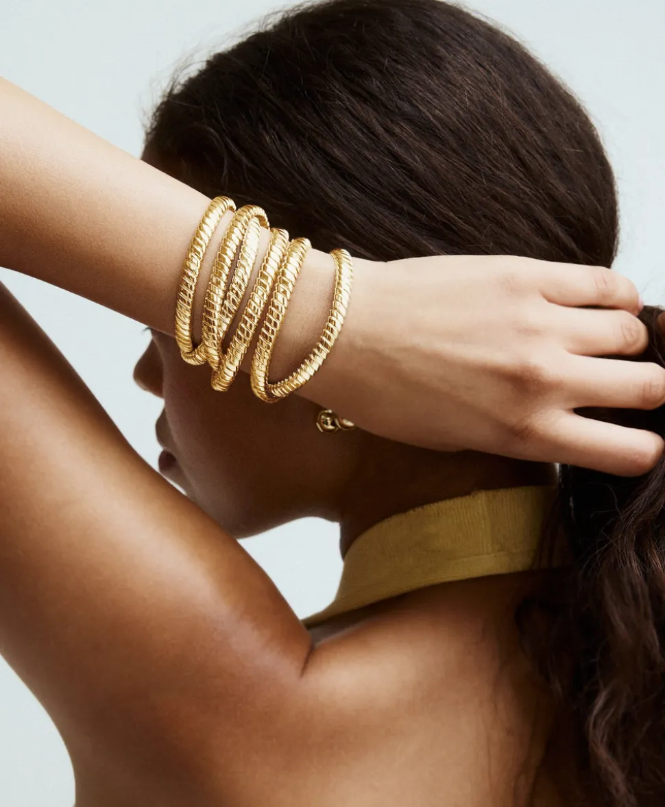 Whimsical, colorful, and crafted with tone-perfect details, Roxanne Assoulin’s four decades of experience—designing for the likes of Marc Jacobs and Oscar de la Renta—are expressed in every piece of her candy-inspired collection of bracelets, chokers, earrings, and more. As the brand likes to say, and as every “it” girl knows, it’s jewelry that makes you smile. Crafted from sensuously intertwined golden bands, The Double Cobra Bracelet is effortlessly sensuous.