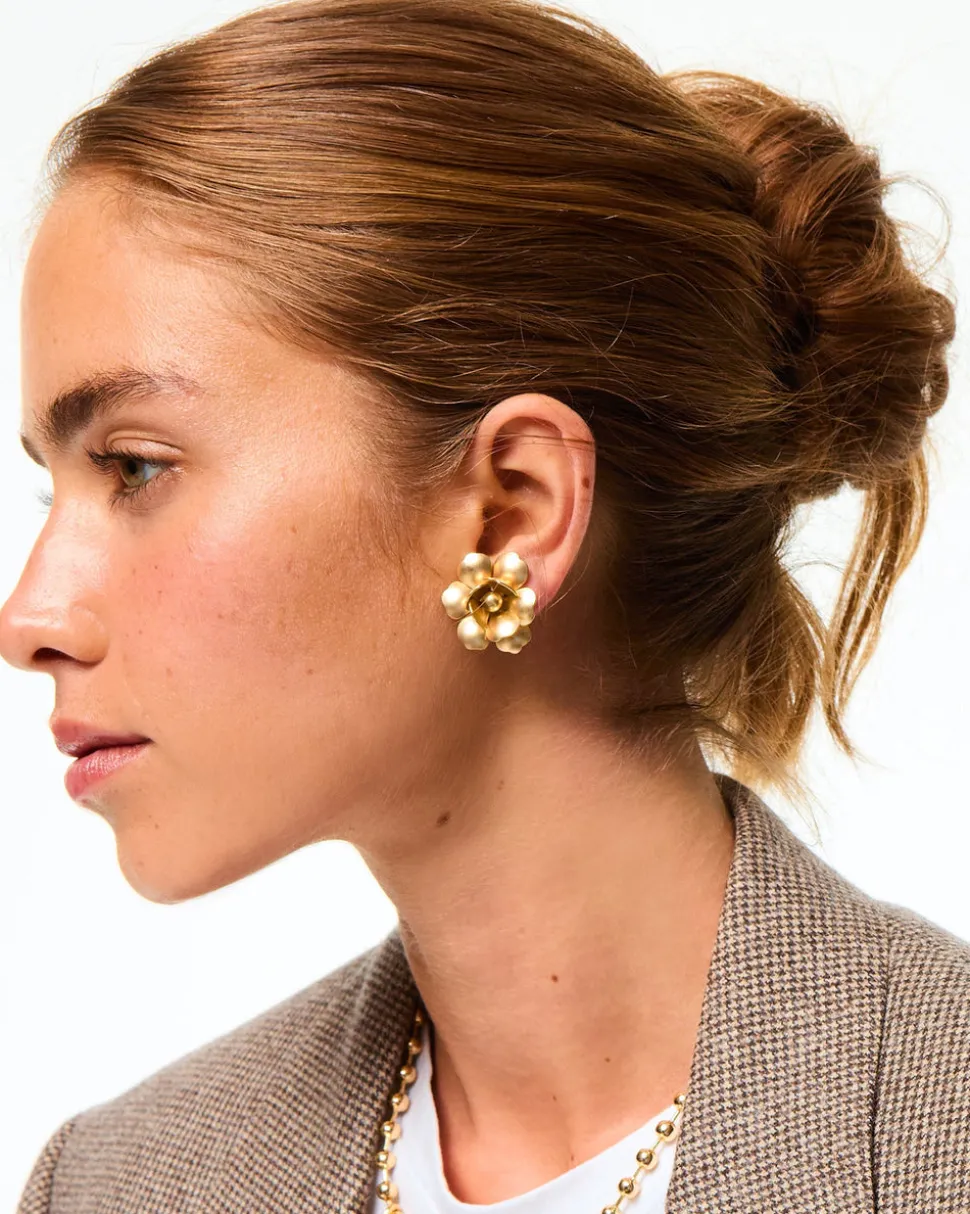 Whimsical, colorful, and crafted with tone-perfect details, Roxanne Assoulin’s four decades of experience—designing for the likes of Marc Jacobs and Oscar de la Renta—are expressed in every piece of her candy-inspired collection of bracelets, chokers, earrings, and more. As the brand likes to say, and as every “it” girl knows, it’s jewelry that makes you smile. The Flower Earrings add a playful touch to any look, featuring a gold tone over brass finish and a classic button clip closure.