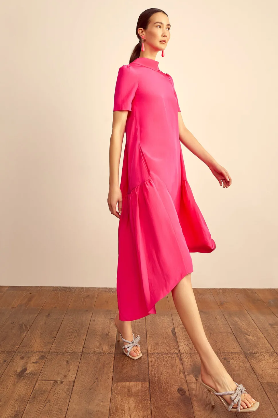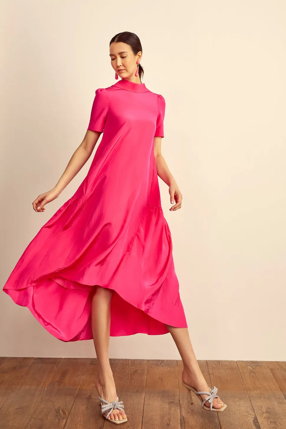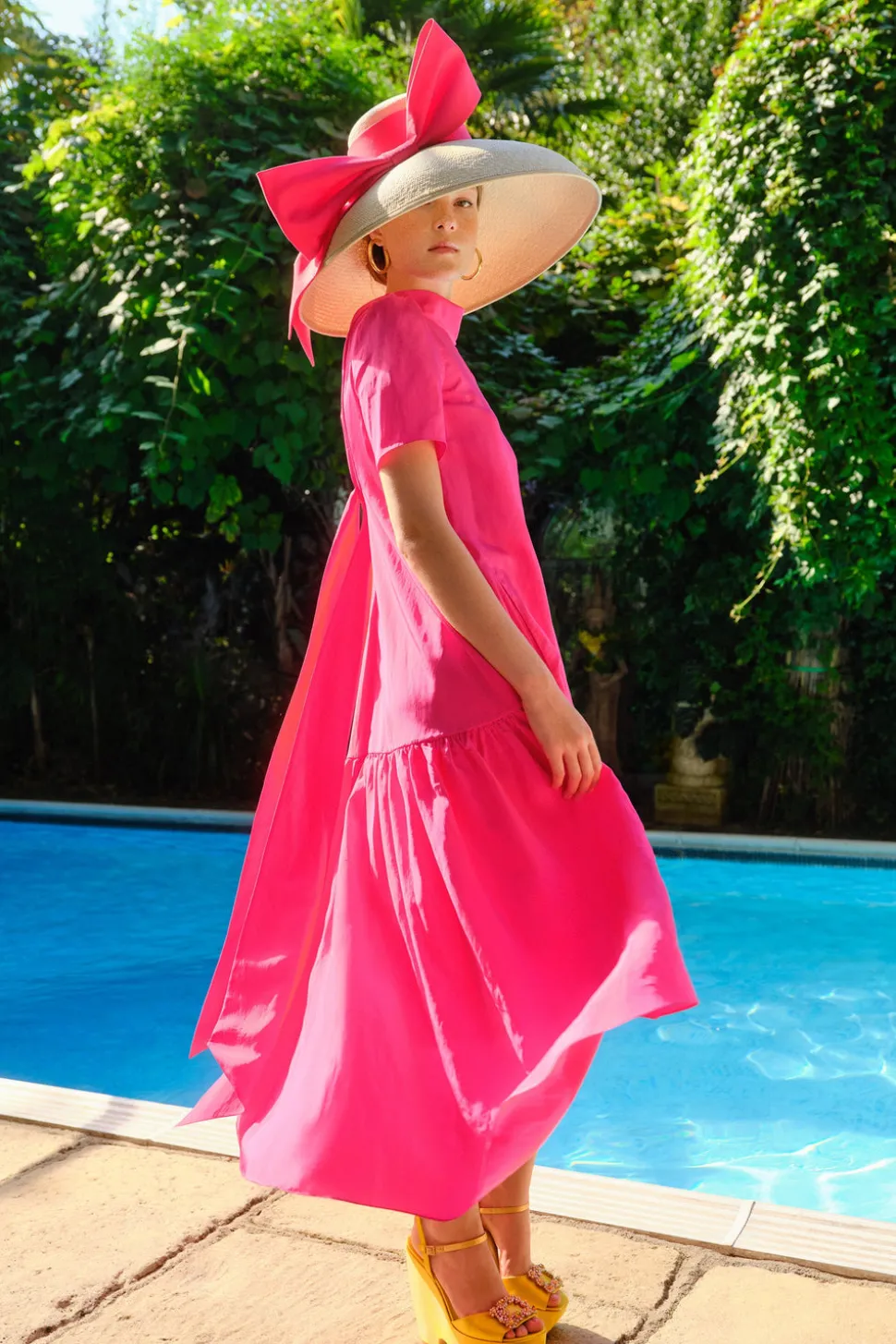 Since 2006, British designer Suzannah Crabb has been creating high-luxury womenswear pieces. Each piece is sustainably made, flawlessly crafted, ultra-flattering, and an excellent choice for all your special occasions, like this beautiful Garland Dress in Hot Pink. This divine, fluid dress is made from a textured FSC sustainable viscose fabric, and is lined with silk habotai for an ultra-comfortable, dreamy feeling when worn. The parachute-inspired cloth has an almost technical feel, and the beautiful scoop back flows into a long feature tie for a modern, playful appeal.
