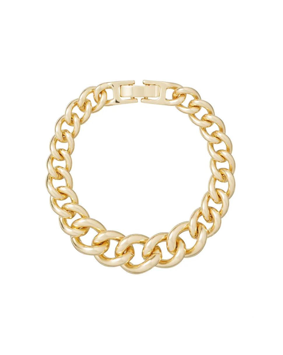 Whimsical, colorful, and crafted with tone-perfect details, Roxanne Assoulin’s four decades of experience—designing for the likes of Marc Jacobs and Oscar de la Renta—are expressed in every piece of her candy-inspired collection of bracelets, chokers, earrings, and more. As the brand likes to say, and as every “it” girl knows, it’s jewelry that makes you smile. The Graduated Link Bracelet in Gold is a polished link chain with a fold-over clasp that adds sleek sophistication to your everyday stack.