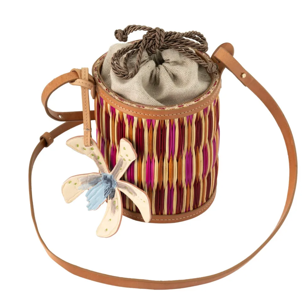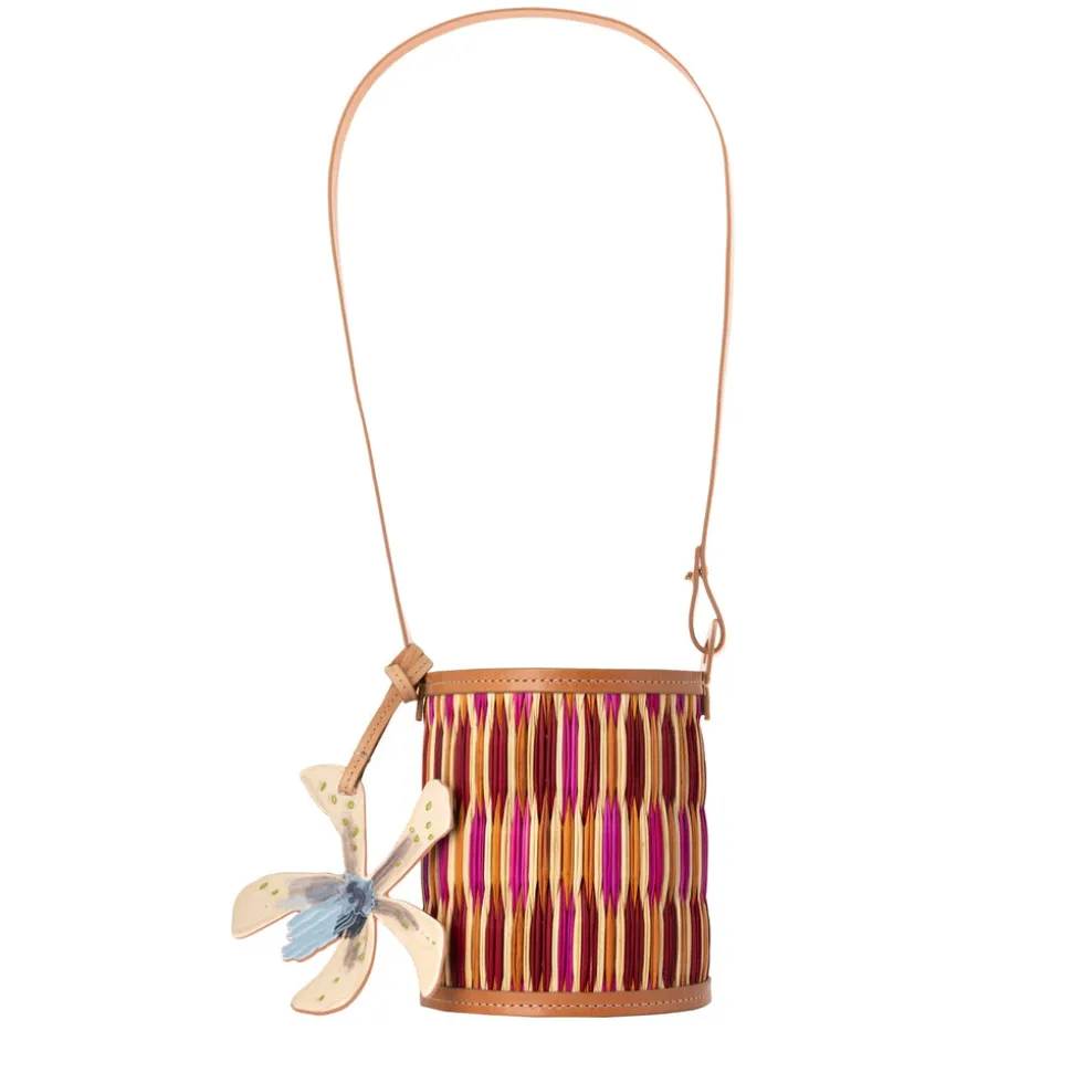 Founder Montserrat Álvarez marries the traditional craftsmanship of coastal Spain and Portugal to a modern sensibility with handwoven reeds, local leatherwork, and porcelain fetiches of the brand’s beach-to-city bags and unique accessories. The “The Grand Tour Collection” Cupid Madras in Pink is a radiant complement to summer’s most elegant moments. Rendered in a rich burgundy hue that recalls sunsets over the sea, this bag channels the calm of cherished travel memories. Topped with a twill drawstring pouch and an adjustable strap, it may be worn over the shoulder or crossbody. Spacious enough to hold daily essentials, this limited-edition design is a celebration of adventure, artistry, and the timeless allure of The Grand Tour.