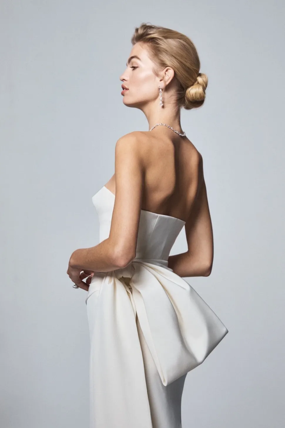 Born in India and raised in New York, where she eventually worked in finance, Natasha Das’s diverse background is at the essence of Danarys New York, a luxury womenswear label that asks its wearer to embrace their strength and fearlessness of their femininity. This classic strapless draped gown features a built-in corset, creating a comfortable fitted bodice. The side bow and sash add a touch of elegance while simultaneously creating a dramatic silhouette.