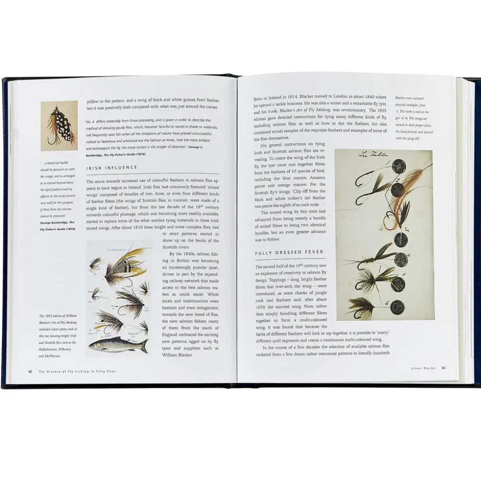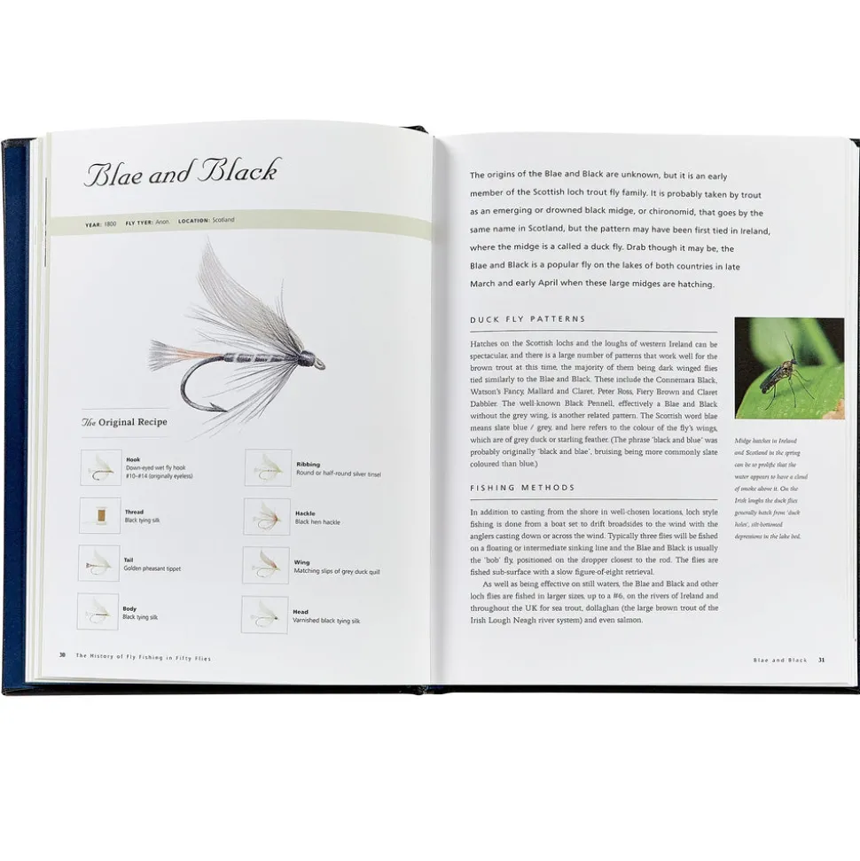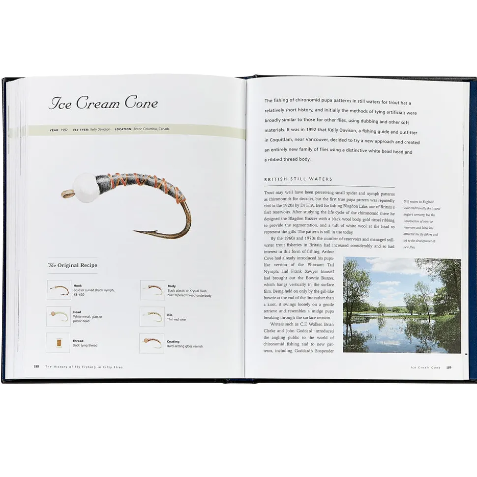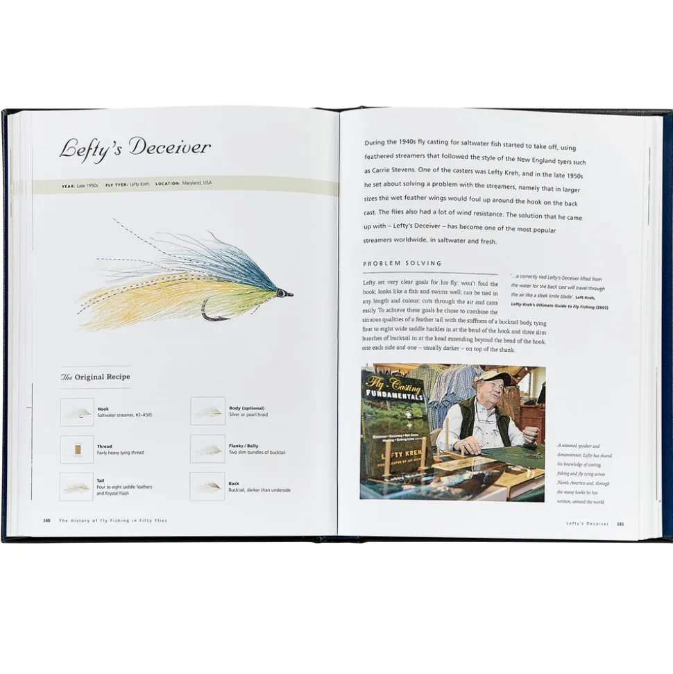 Hardcover edition. Features 50 significant flies with tying guidance, photography, illustrations, and historical context. 224 pages.