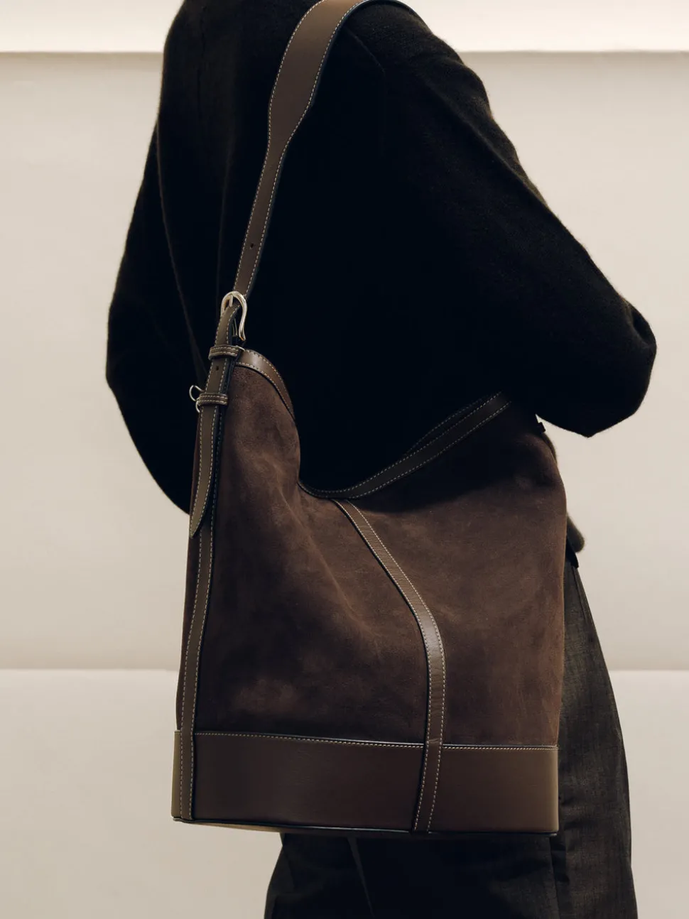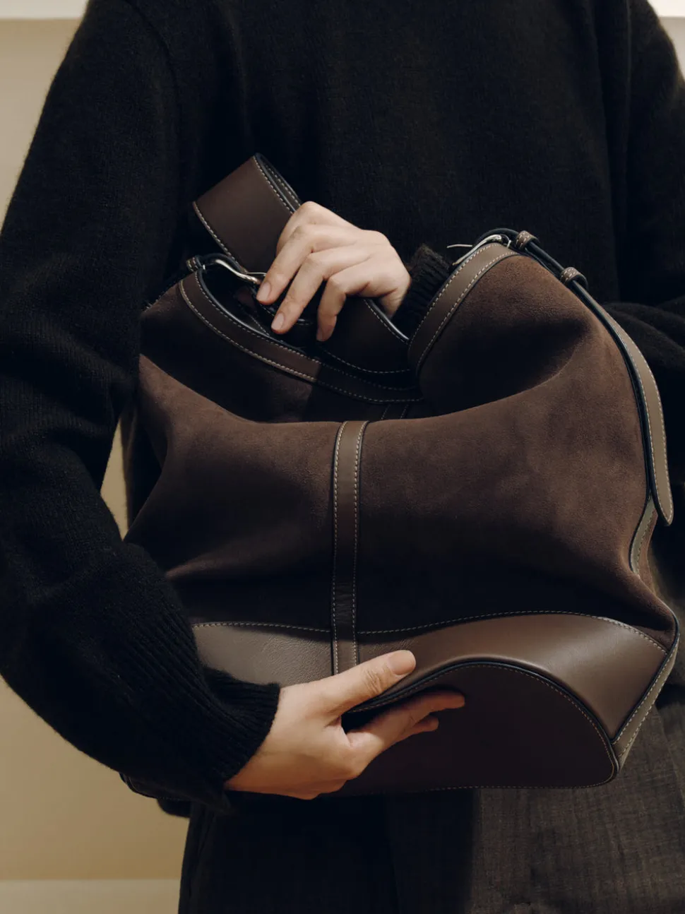 Every Hunting Season collection includes a selection of woven handbags crafted by female artisans in Colombia, furthering the brand’s mission to promote heritage craft to a luxury level while supporting the livelihoods of fellow creative women. The Hobo in Dark Brown Suede strikes a seamless balance between ease and refinement. Handcrafted in Spain from supple suede, this slouchy silhouette is designed to soften over time, developing a natural drape that enhances its understated elegance. Spacious enough to fit a laptop and daily essentials, it features a fully lined interior with practical pockets for organization. Clean topstitching, refined hardware, and an adjustable shoulder strap offer both comfort and polish, while a magnetic closure ensures effortless use.