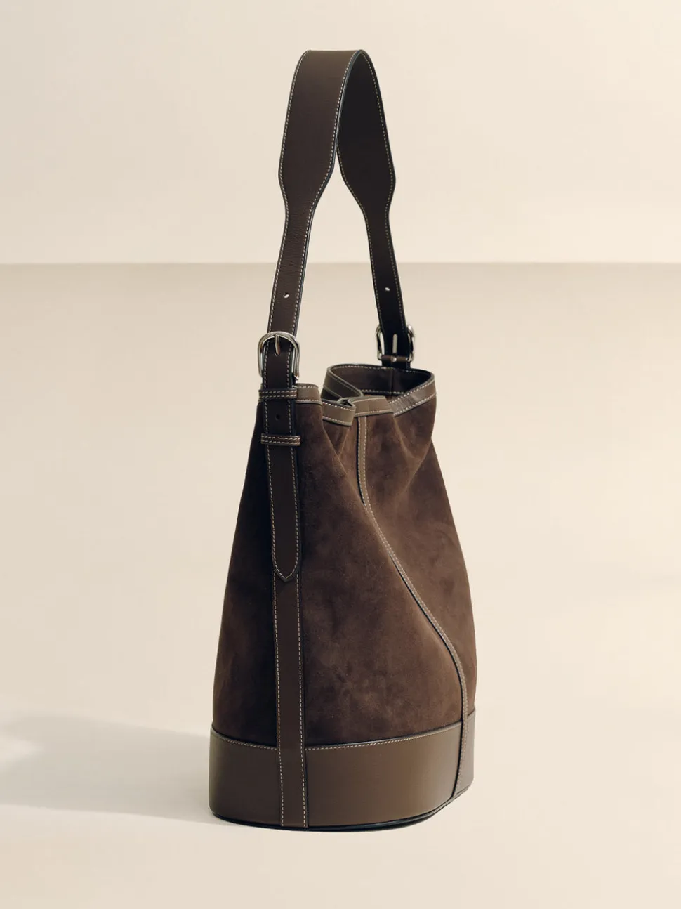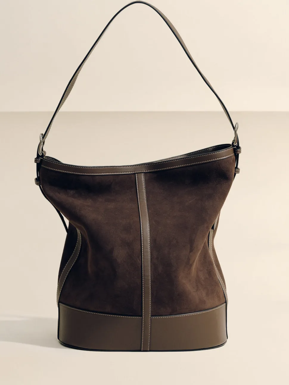 Avoid contact with liquids and solvents. Store in dust bag when not in use. This item should be handled with care to preserve the suede finish. We recommend keeping it away from abrasive materials that may scratch or discolor the leather. Clean professionally by a leather expert.