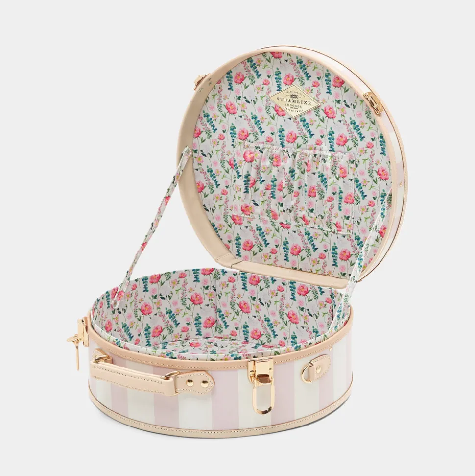 SteamLine Luggage brings glamor back to travel. Founded in 2005 by Sarah Banks, each piece of luggage honors the craftsmanship, beauty and style of suitcases from an era long since passed. Each SteamLine case is built for ease of movement, security and durability, while crafted in eye-catching colors and stunning interiors. An ideal way to protect your favorite items, the Illustrator Large Pink Hatbox‘s striped rose body opens up to reveal an interior lining with a print of wildflowers illustrated by Lauren Taylor. Featuring tan leather handles, corners, straps, as well as gold hardware details, a caddy fit for a queen.