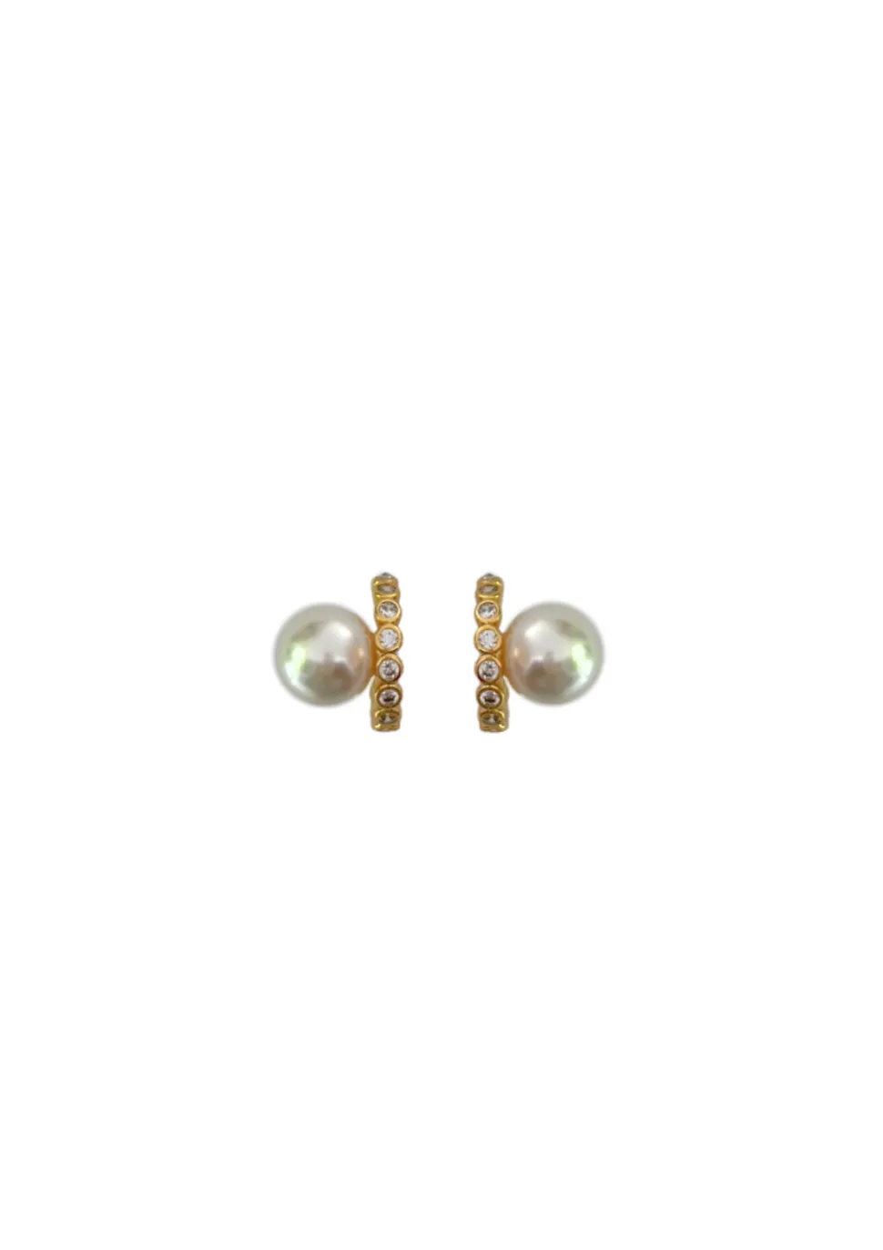 Gold plated, cut glass, faux pearl. Earrings come with posts. These earrings are unable to be converted to clips.