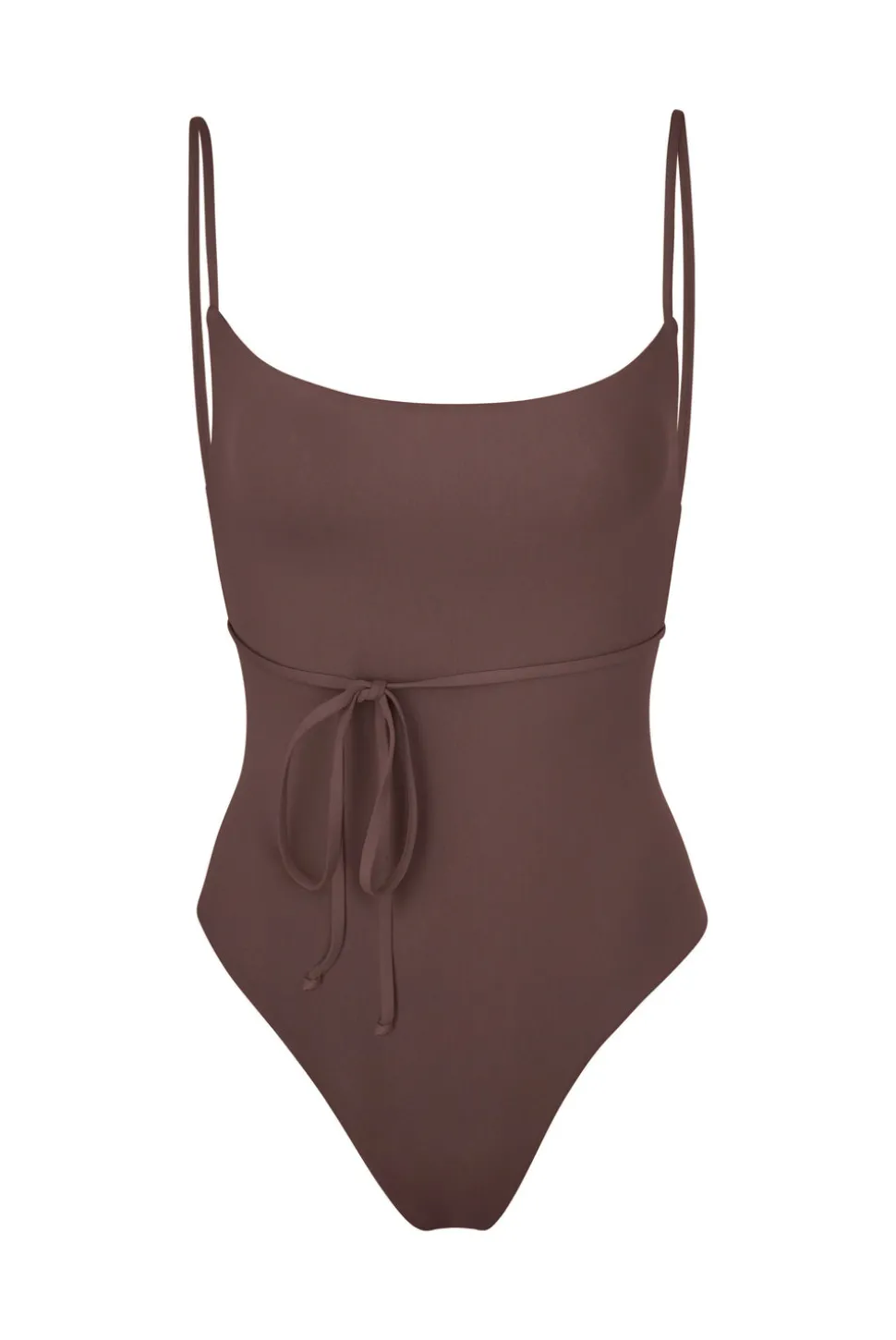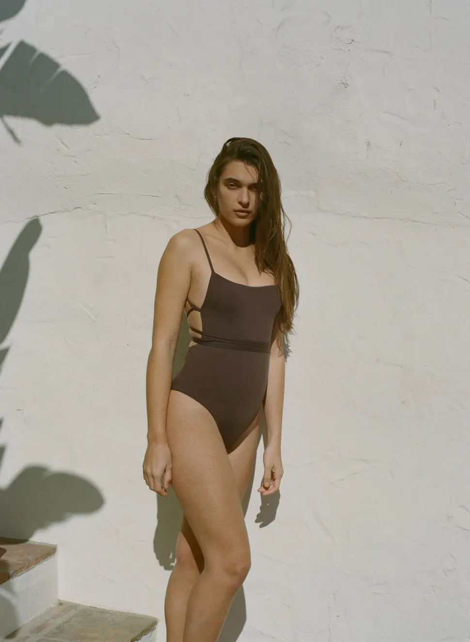 Focusing on minimalism and sustainability, California natives Lauren Arapage and Joshua Shaub founded Anemos to share their home state’s laid back vibes, and their honed fashion aesthetic, to swimmers and beachgoers on every coast. Dependably gorgeous, the K.M. Tie One-Piece is both chic and feminine. The square neckline plays to the 90s, while the high-cut leg and cheeky bottom are timeless and nonstop fun.