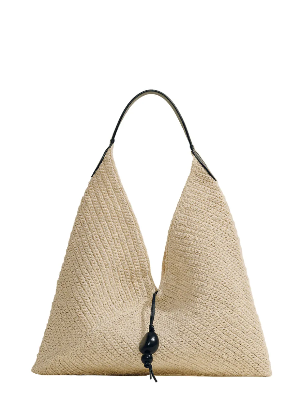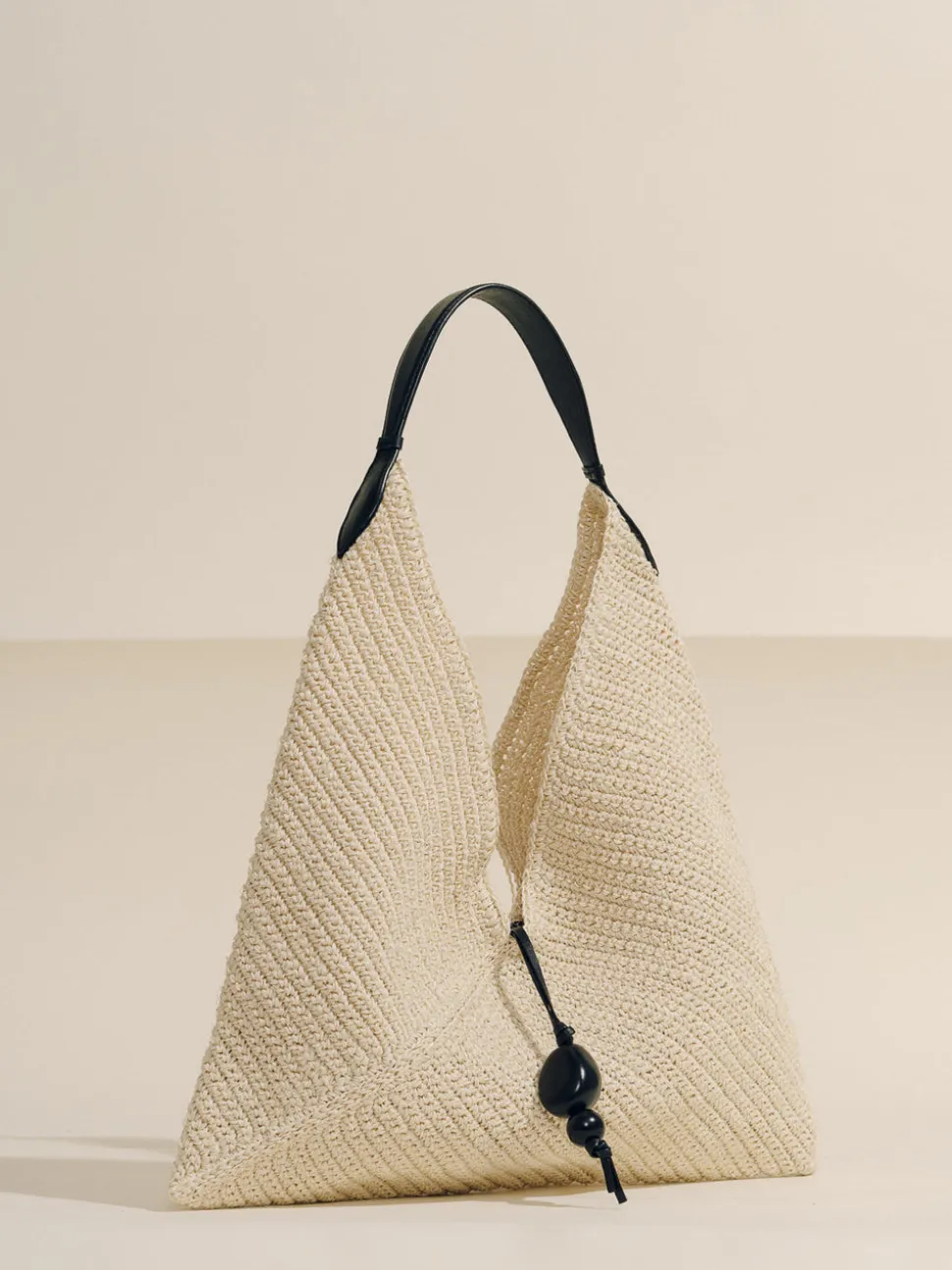 Handwoven natural fibers with cognac nappa leather handle. Fique leaves. Signature tagua seed charm. Each origami is unique, with natural variations in tones and textures that highlight the artisanal craftsmanship behind this accessory. Made in Colombia.