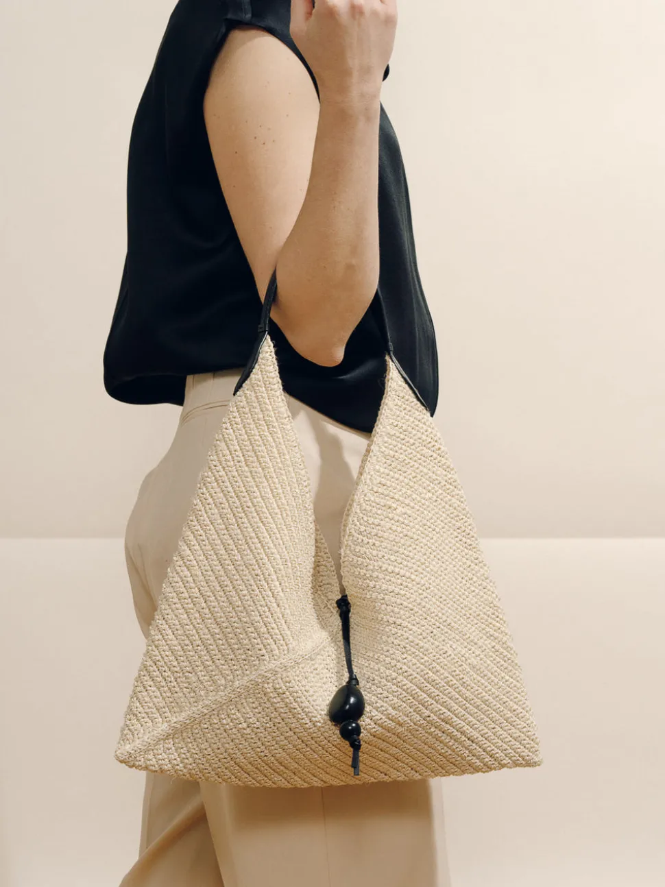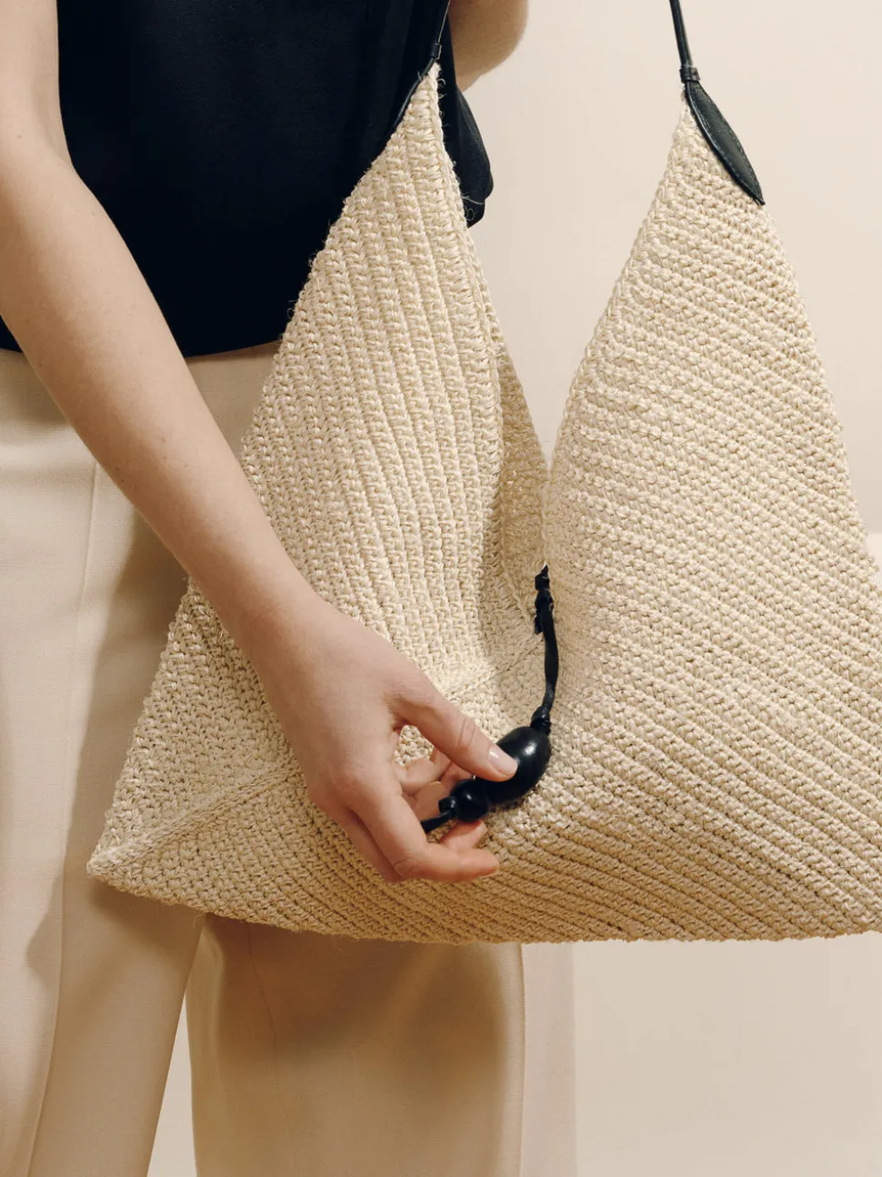 Every Hunting Season collection includes a selection of woven handbags crafted by female artisans in Colombia, furthering the brand’s mission to promote heritage craft to a luxury level while supporting the livelihoods of fellow creative women. The Larfe Origami in Black & Natural Fiber is a study in effortless elegance. Inspired by the artful folds of its namesake, this handwoven silhouette lays delicately flat against the body, making it as graceful to wear as it is practical to carry. Its sculptural form is balanced by a supple leather handle and a hand-carved tagua charm—an organic accent that nods to nature’s quiet luxury. Lightweight and perfectly packable, the Origami transitions seamlessly from beachside escapes to city strolls, embodying understated sophistication in every setting.