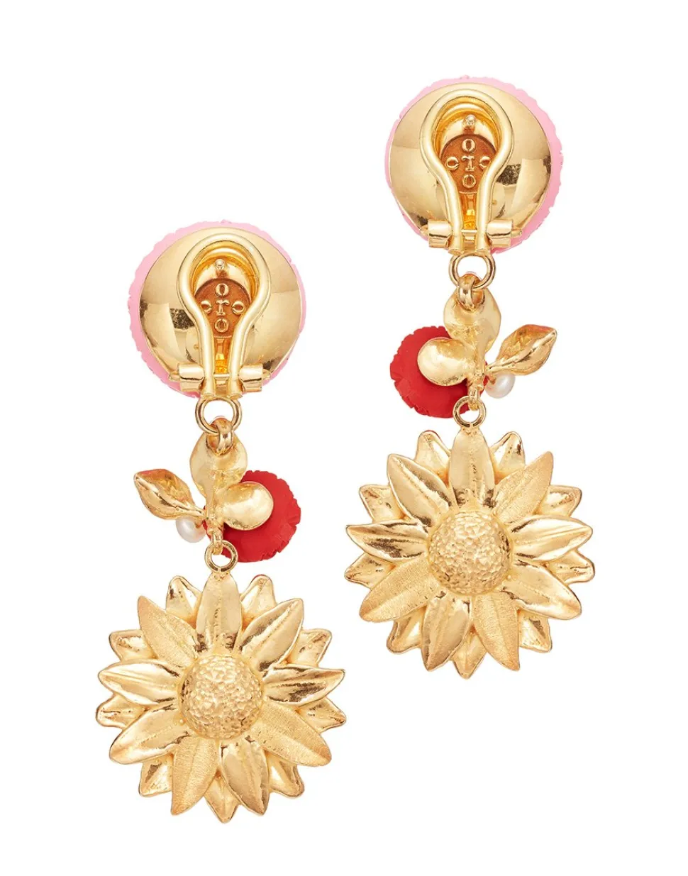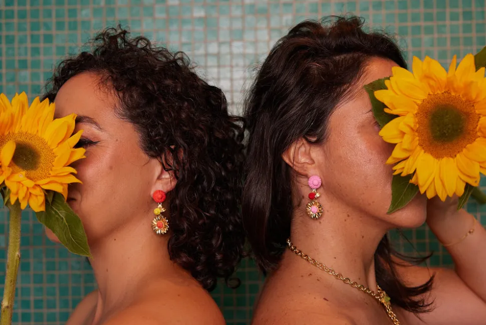 Of Rare Origin approaches jewelry as wearable poetry—at once elegant and intriguing. Fusing creative curiosity, resourcefulness, and international heritage, mother and daughter, Leslie and Octavia launched this New York City-based brand in March 2016, combining thirty years of experience in the jewelry, design, and arts industries. Inspired by the sunflower fields in Southern Italy, the Limoncello in Bubble Pink and Ruby brings a bright burst of color with gilded petals to your look.