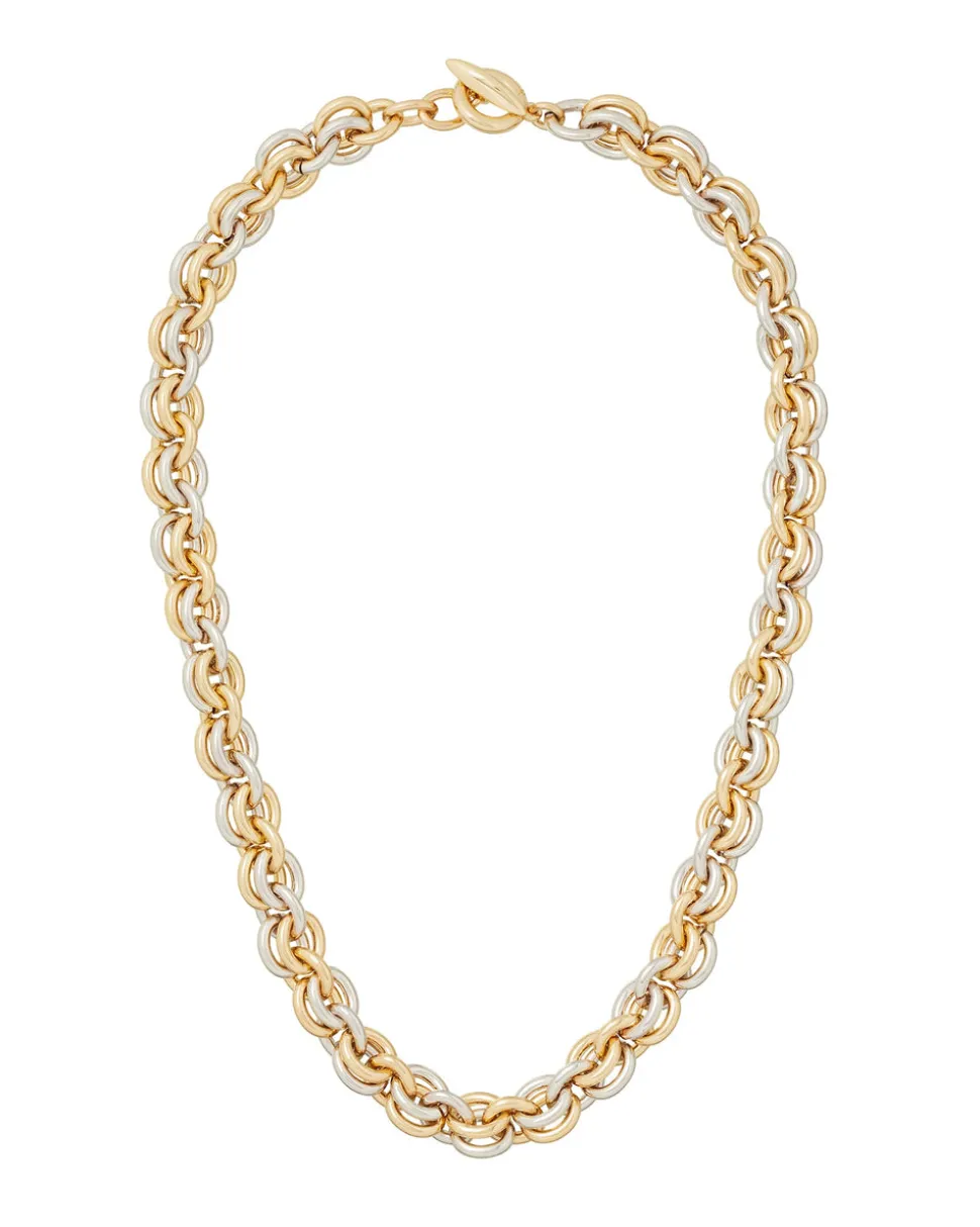 Gold and silver tone chain link. Toggle closure.
