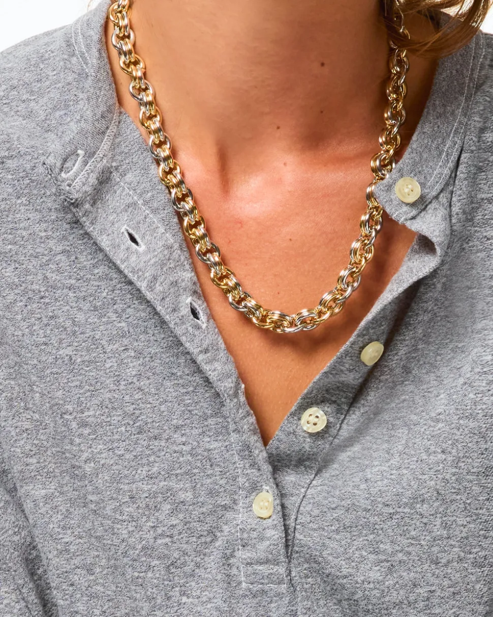 Whimsical, colorful, and crafted with tone-perfect details, Roxanne Assoulin’s four decades of experience—designing for the likes of Marc Jacobs and Oscar de la Renta—are expressed in every piece of her candy-inspired collection of bracelets, chokers, earrings, and more. As the brand likes to say, and as every “it” girl knows, it’s jewelry that makes you smile. The Lush Link Necklace is a bold chain link style in mixed metal tones, finished with a toggle closure for easy, everyday wear.