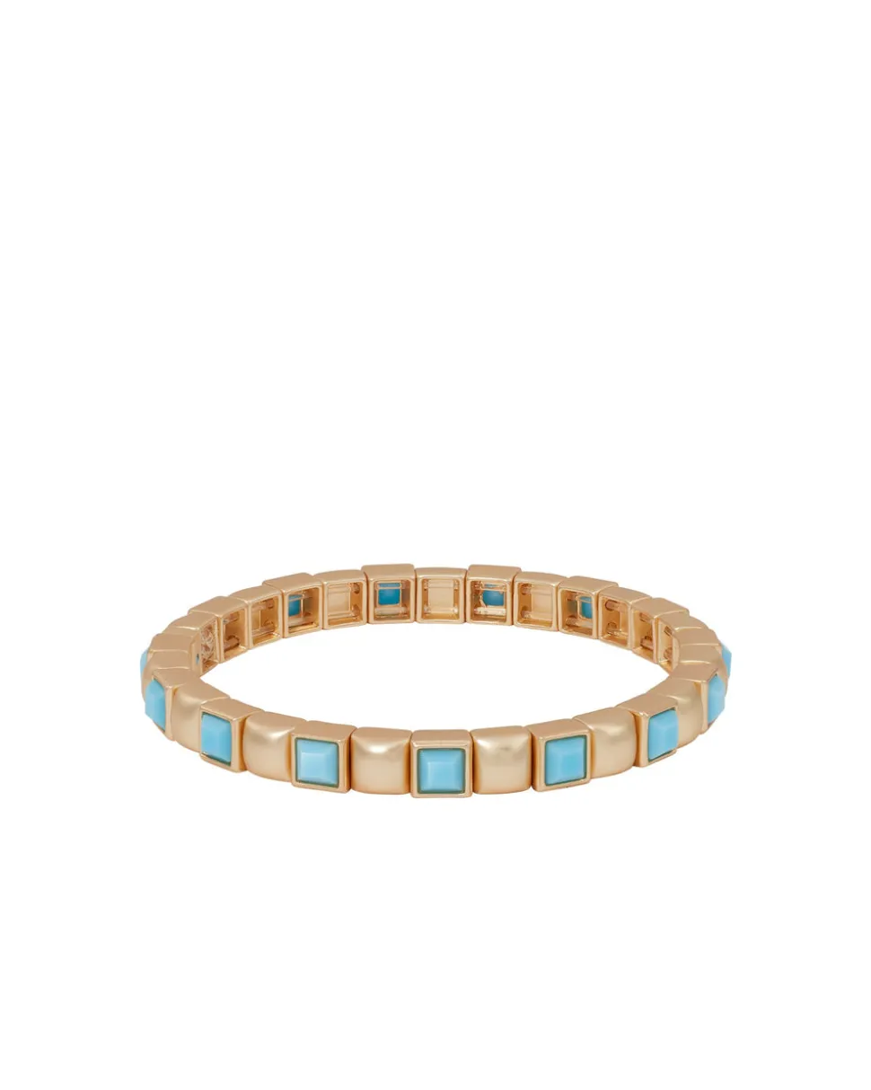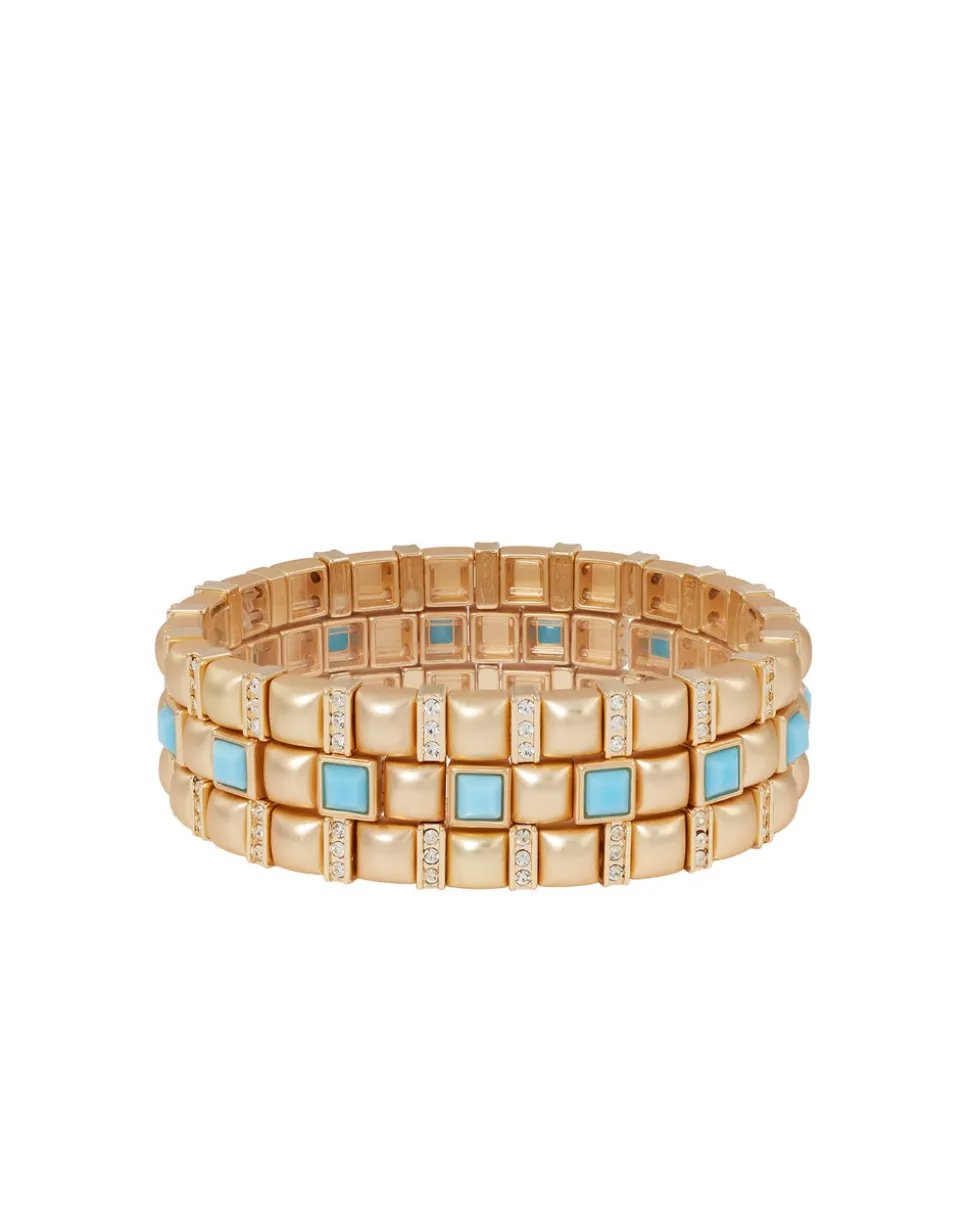 Whimsical, colorful, and crafted with tone-perfect details, Roxanne Assoulin’s four decades of experience—designing for the likes of Marc Jacobs and Oscar de la Renta—are expressed in every piece of her candy-inspired collection of bracelets, chokers, earrings, and more. As the brand likes to say, and as every “it” girl knows, it’s jewelry that makes you smile. The Mini Jeweled Bracelet Stack offers a dainty take on sparkle with gold tone stretch bracelets accented with crystals for just the right amount of shine.