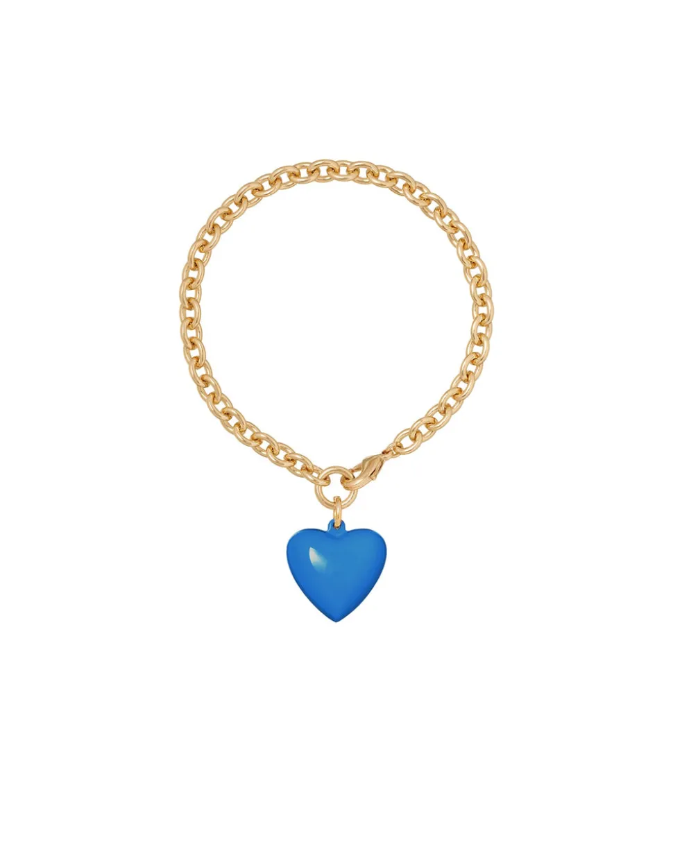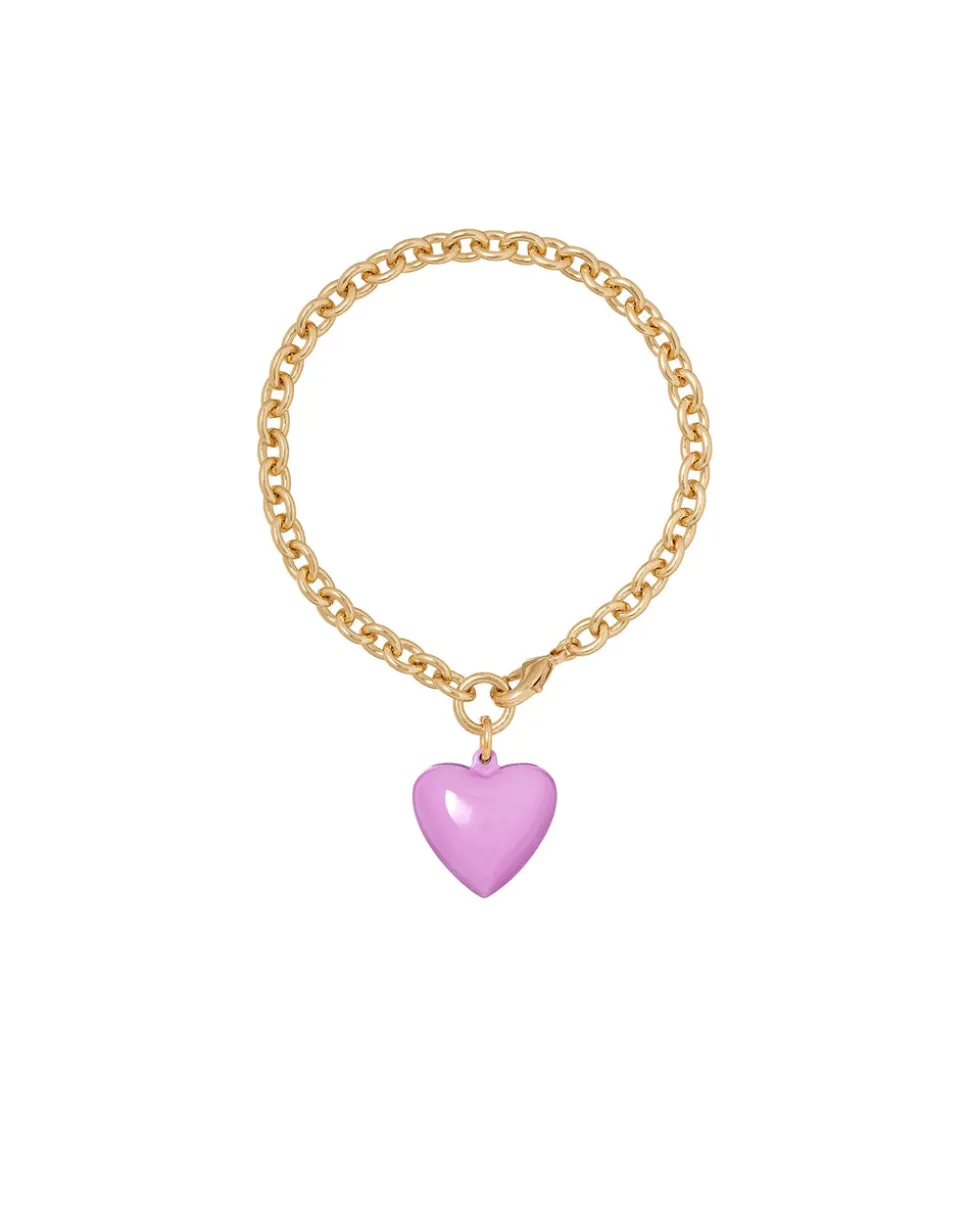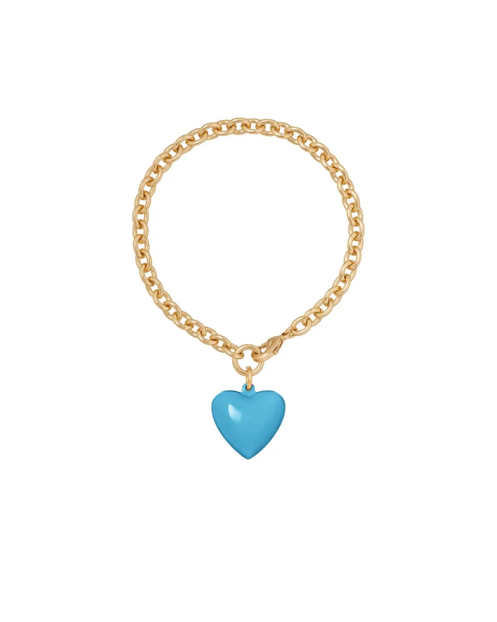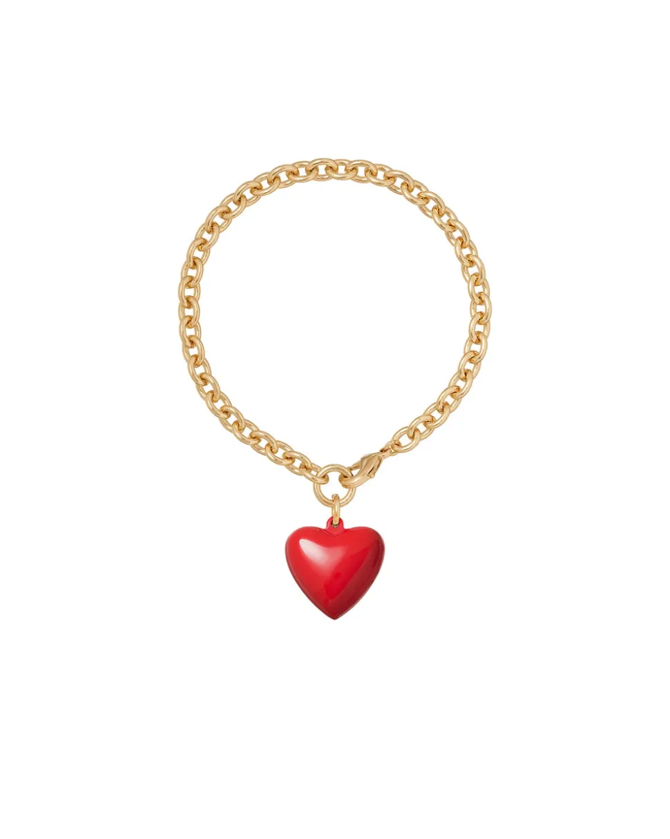 Whimsical, colorful, and crafted with tone-perfect details, Roxanne Assoulin’s four decades of experience—designing for the likes of Marc Jacobs and Oscar de la Renta—are expressed in every piece of her candy-inspired collection of bracelets, chokers, earrings, and more. As the brand likes to say, and as every “it” girl knows, it’s jewelry that makes you smile. The Mini Puffy Heart Bracelet is a colorful and charming bracelet dripping in romance. The enamel mini puffy heart pendant is removable, giving you freedom to get creative with the brass chain bracelet.