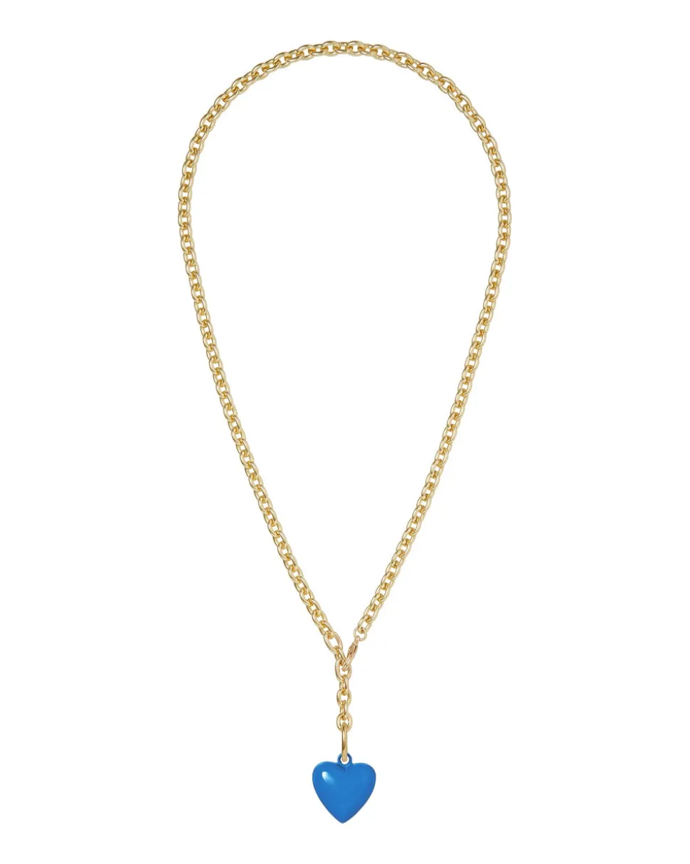 Whimsical, colorful, and crafted with tone-perfect details, Roxanne Assoulin’s four decades of experience—designing for the likes of Marc Jacobs and Oscar de la Renta—are expressed in every piece of her candy-inspired collection of bracelets, chokers, earrings, and more. As the brand likes to say, and as every “it” girl knows, it’s jewelry that makes you smile. The Mini Puffy Heart Necklace in Blue is a royal ocean hue. The enamel mini puffy heart pendant is removable, giving you freedom to get creative with the brass chain.