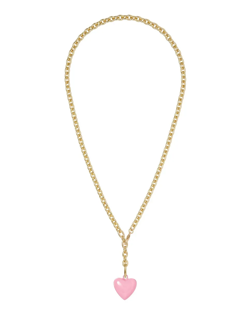 Whimsical, colorful, and crafted with tone-perfect details, Roxanne Assoulin’s four decades of experience—designing for the likes of Marc Jacobs and Oscar de la Renta—are expressed in every piece of her candy-inspired collection of bracelets, chokers, earrings, and more. As the brand likes to say, and as every “it” girl knows, it’s jewelry that makes you smile. The Mini Puffy Heart Necklace in Pink is a bubblegum dream. The enamel mini puffy heart pendant is removable, giving you freedom to get creative with the brass chain.