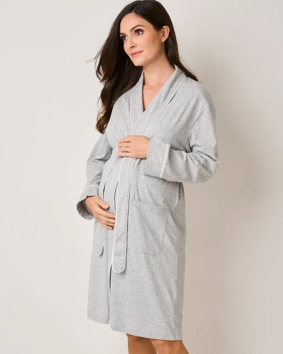 Petite Plume wishes you a “bonne nuit,” and in their luxury sleepwear, it’s hard not to oblige. Crafted from the softest 100% Pima Cotton with a gentle stretch, the Must Have Maternity Set in Light Heather Grey was designed with expecting summer moms top of mind. This thoughtful set includes shorts, cami, and a robe that will keep you feeling your best self during warmer months. This set comes in a beautiful box, ready-to-gift.