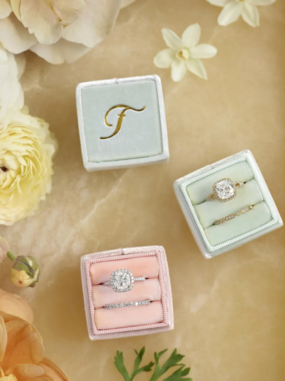 The Mrs. Box creates elegant, colorful, and limited edition velvet heirloom ring boxes. These vintage-inspired designs make wonderful engagement and wedding gifts, personalized with custom monograms. The Nouvelle Classic Double is individually handmade using what the brand considers to be the world’s most extraordinary velvet. Featuring custom colors made exclusively for The Mrs. Box, these new boxes are so exquisite they truly sparkle in person, reflecting light in the most glorious way possible. With a unique, stunning presentation, this choice is ideally elegant for popping the question.