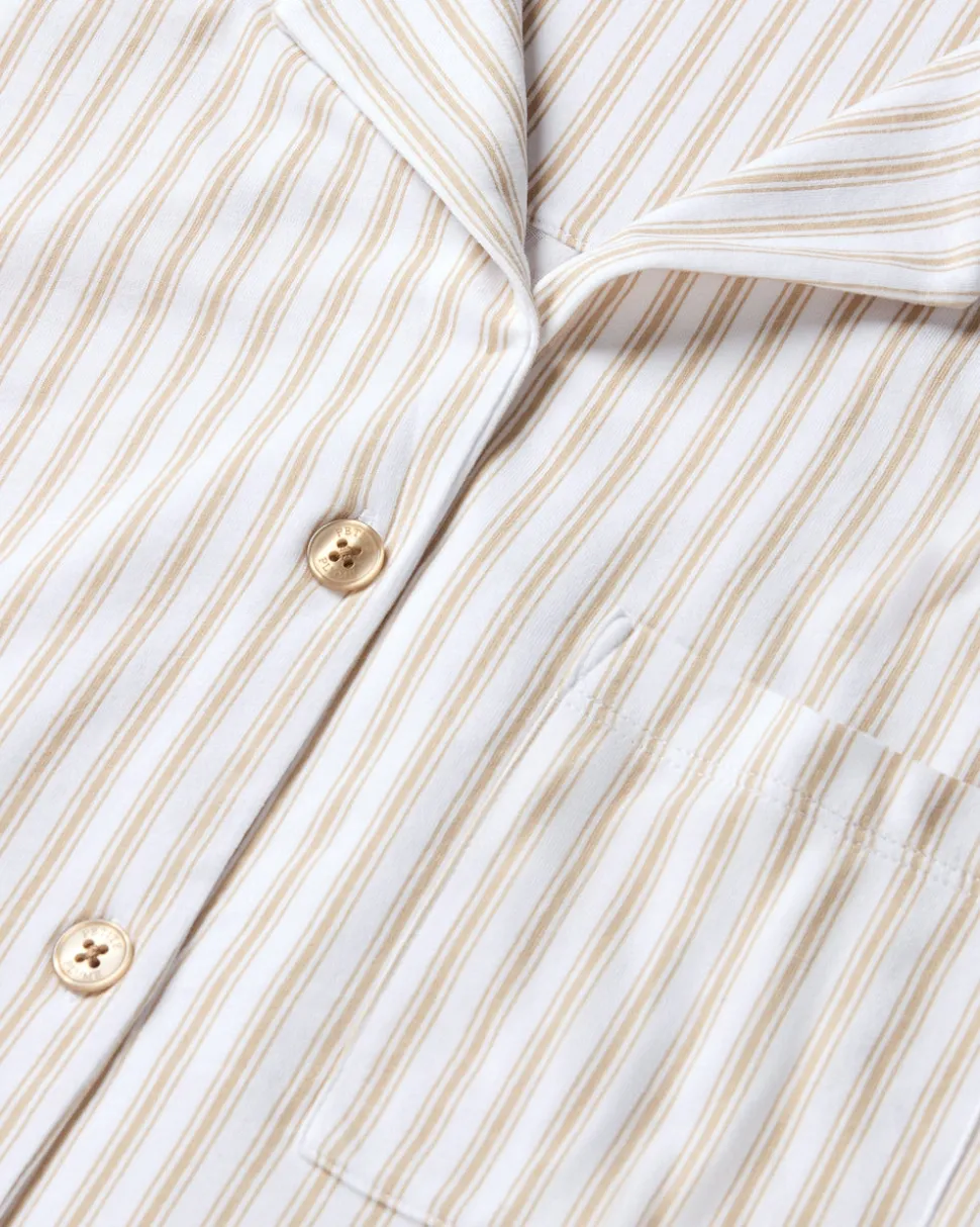 Petite Plume wishes you a “bonne nuit,” and in their luxury sleepwear, it’s hard not to oblige. Traditional French ticking is even more classic in this elegant colorway. The Olivia Wide Leg Pima Pajama Set in Sage introduces a calming new shade to your nighttime ritual. Tailored with feminine ease, this design features three-quarter length sleeves and a more generous pant leg that creates a refined swish-swish as you walk, combining comfort with elegance. Crafted from buttery soft Pima cotton in a serene green, it’s destined to become a sleepwear staple.