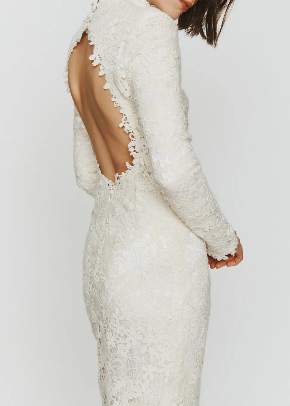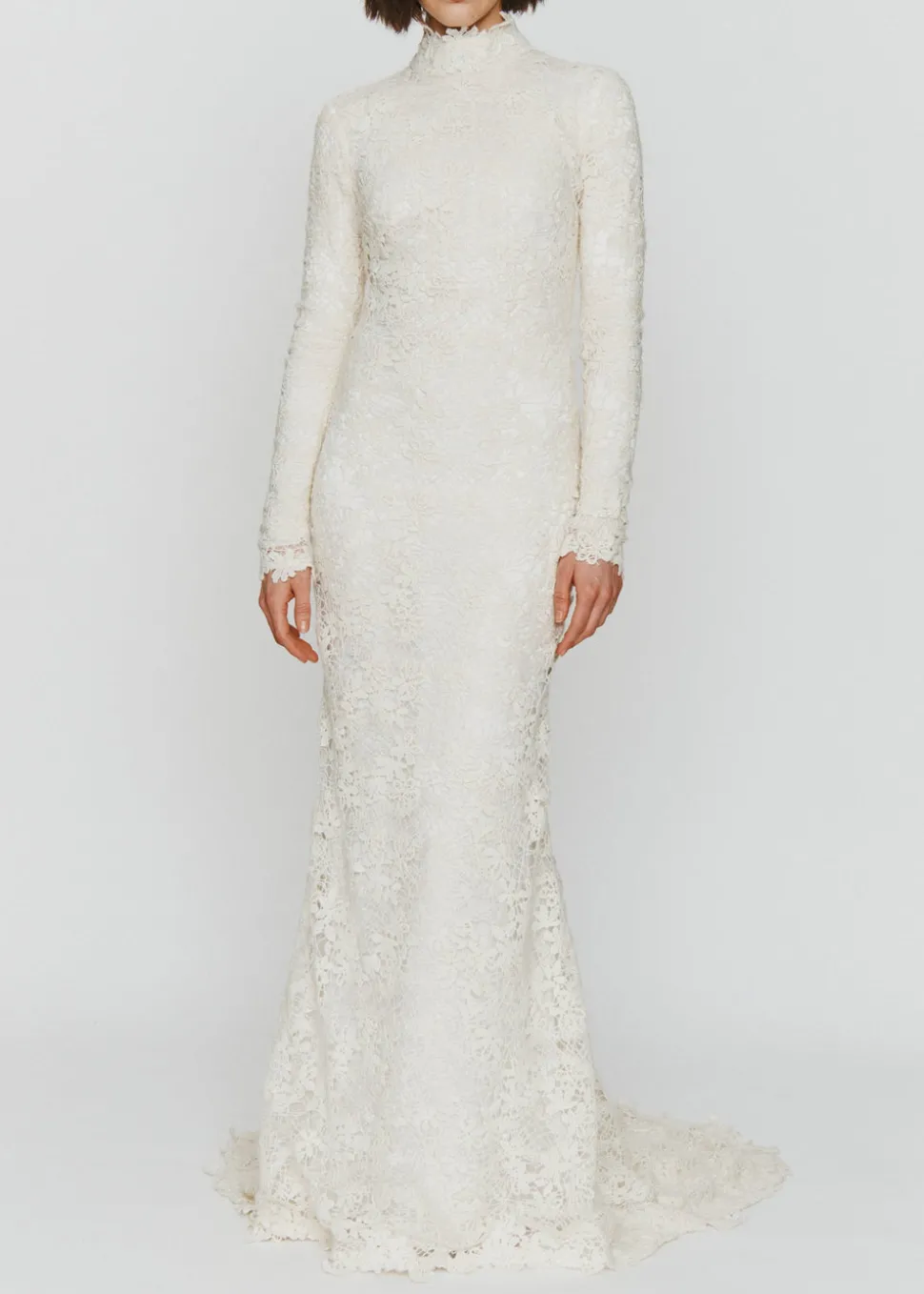 After honing her design vision and couture experience at Zac Posen, Narciso Rodriguez, and Chanel, Meredith Stoecklein emerges on her own with LEIN. The brand offers a new concept of tasteful, stylish wedding wear for the thoroughly modern bride. Made with Italian wool lace, The Peterson features a stunning, low open back.