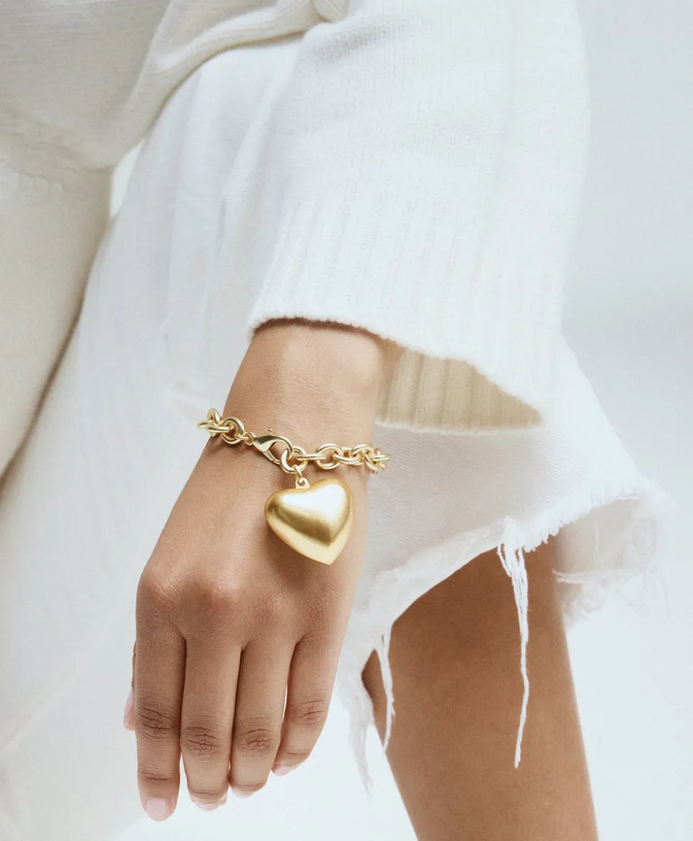 Whimsical, colorful, and crafted with tone-perfect details, Roxanne Assoulin’s four decades of experience—designing for the likes of Marc Jacobs and Oscar de la Renta—are expressed in every piece of her candy-inspired collection of bracelets, chokers, earrings, and more. As the brand likes to say, and as every “it” girl knows, it’s jewelry that makes you smile. Let your love show, with The Puffy Heart Bracelet in Gold, a surprisingly lightweight golden bracelet featuring the brand’s signature charm.