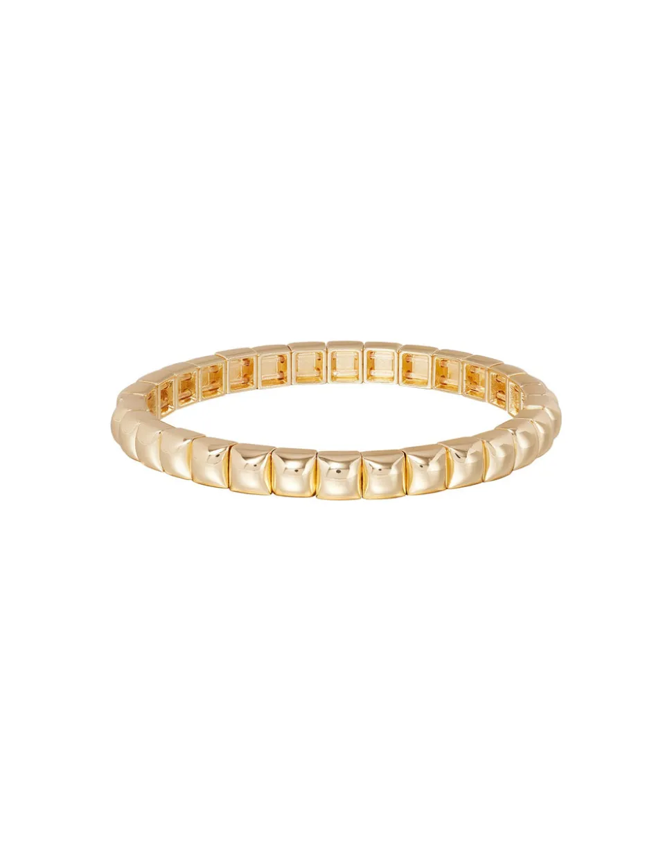Gold tone stretch bracelets with puffy and heart studs.