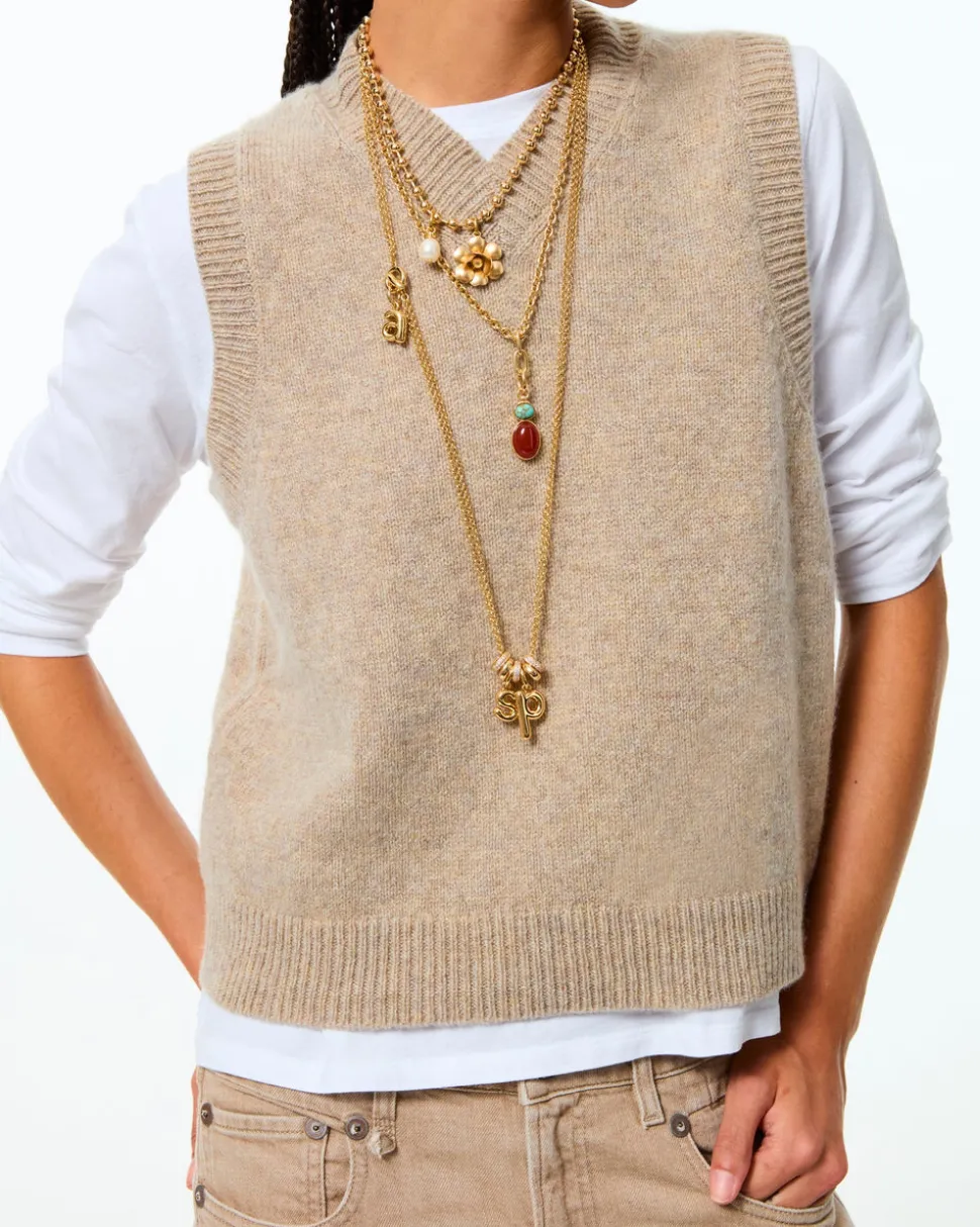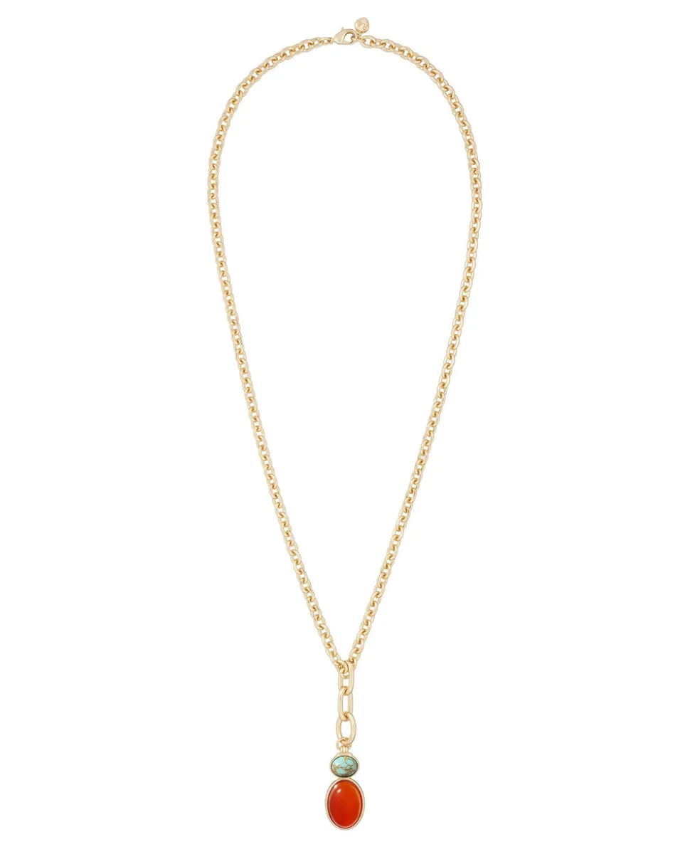 Whimsical, colorful, and crafted with tone-perfect details, Roxanne Assoulin’s four decades of experience—designing for the likes of Marc Jacobs and Oscar de la Renta—are expressed in every piece of her candy-inspired collection of bracelets, chokers, earrings, and more. As the brand likes to say, and as every “it” girl knows, it’s jewelry that makes you smile. The Semi Precious Stone Necklace combines carnelian and turquoise cabochons in a polished gold-tone setting, making it an elegant yet playful statement piece.