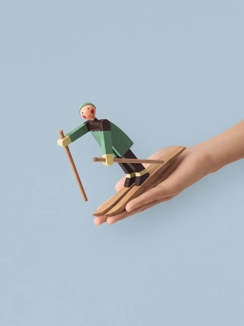 Kay Bojesen has become an iconic symbol of Danish design, bringing joy to homes worldwide with creations like this happy little skier, designed in the late 1940s in a very small series, making the originals quite rare. Named Boje, the pet name of Kay Bojesen’s son, Otto, this re-launched character will warm any room with his red bobble hat, checkered jacket, and cheerful expression.