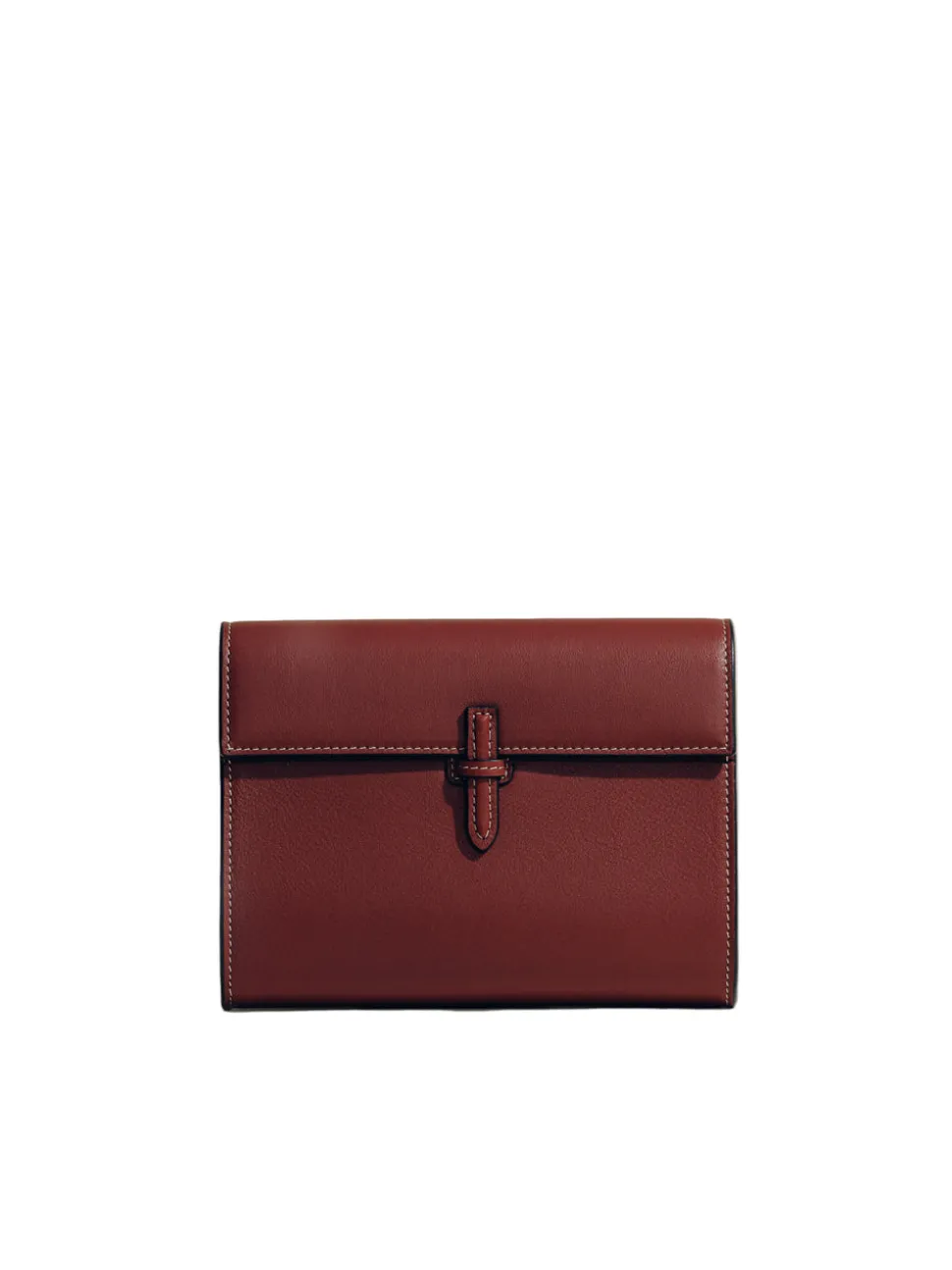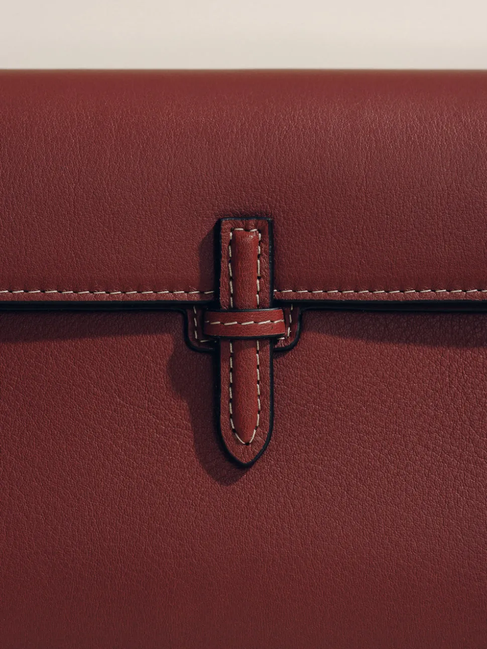 Every Hunting Season collection includes a selection of woven handbags crafted by female artisans in Colombia, furthering the brand’s mission to promote heritage craft to a luxury level while supporting the livelihoods of fellow creative women. The Small Soft Clutch in Deep Red Nappa features a slim, easy silhouette designed to transition effortlessly from day to night. Lightweight and versatile, it can be carried solo as a refined statement piece or paired with a larger bag like The Drawstring for layered styling. The fold-over design is secured by a signature slip-through closure, blending practicality with understated elegance.