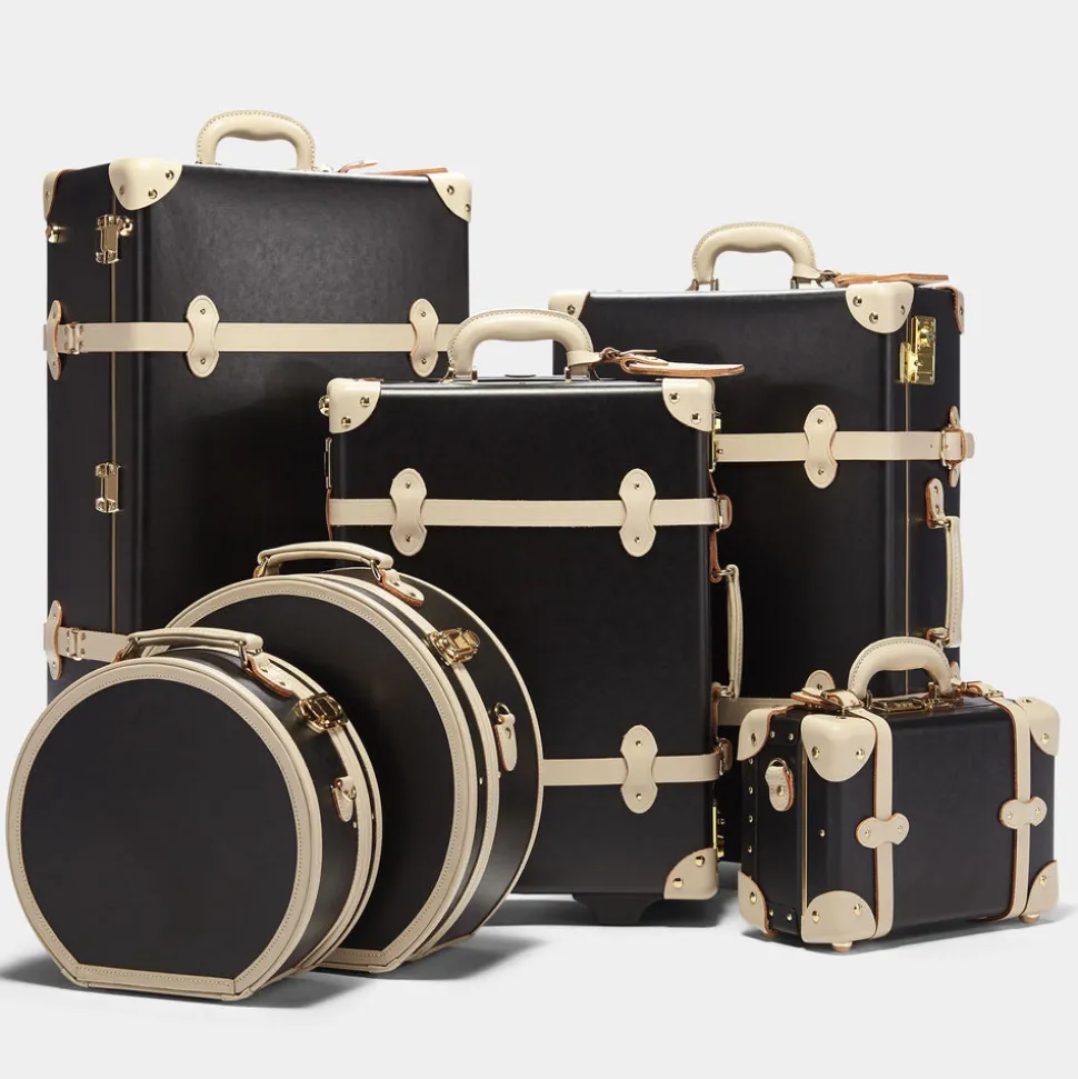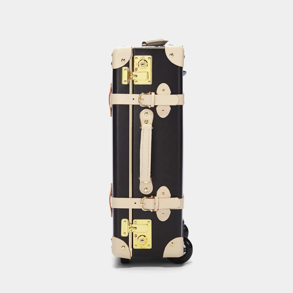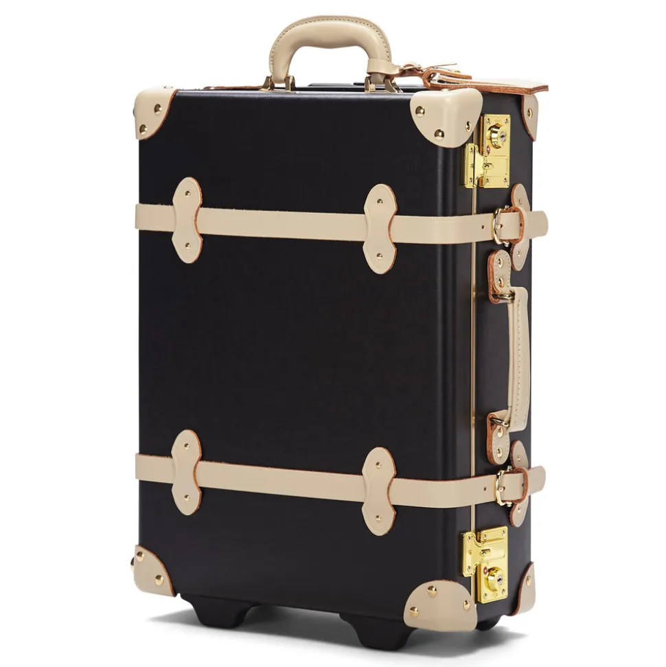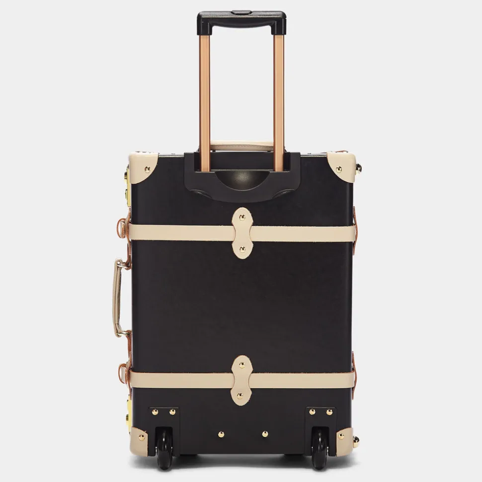 The Starlet Carryon is accented with ivory straps and golden hardware for a statement exterior that opens to reveal a playful lining of black polka dots on ivory white.
