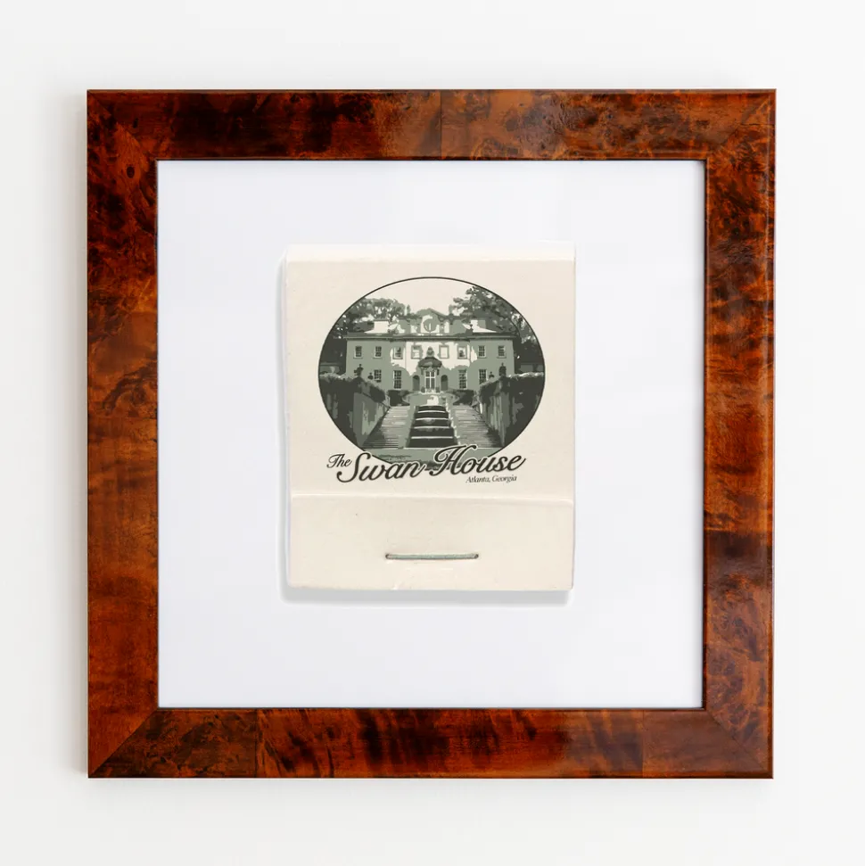 Handcrafted in the heart of Atlanta, Match South frames vintage matchbook images of professional sports teams, golf courses, restaurants, and hometown favorites. Ignited in 2015, the brand was created as a passion project to kindle love and support the restaurant industry—designing high-quality photographs of matchbooks from every corner of the country. Paying homage to the Atlanta home designed by Philip Trammell Shutze in 1928 for Edward and Emily Inman, The Swan House frame makes for an effortless styling piece. Available in three colors, these frames have a white flat profile with clear acrylic for safe shipping.