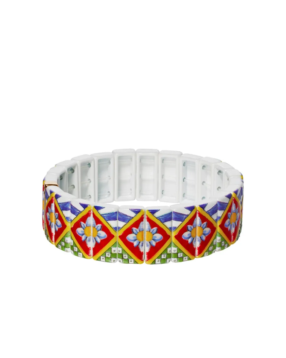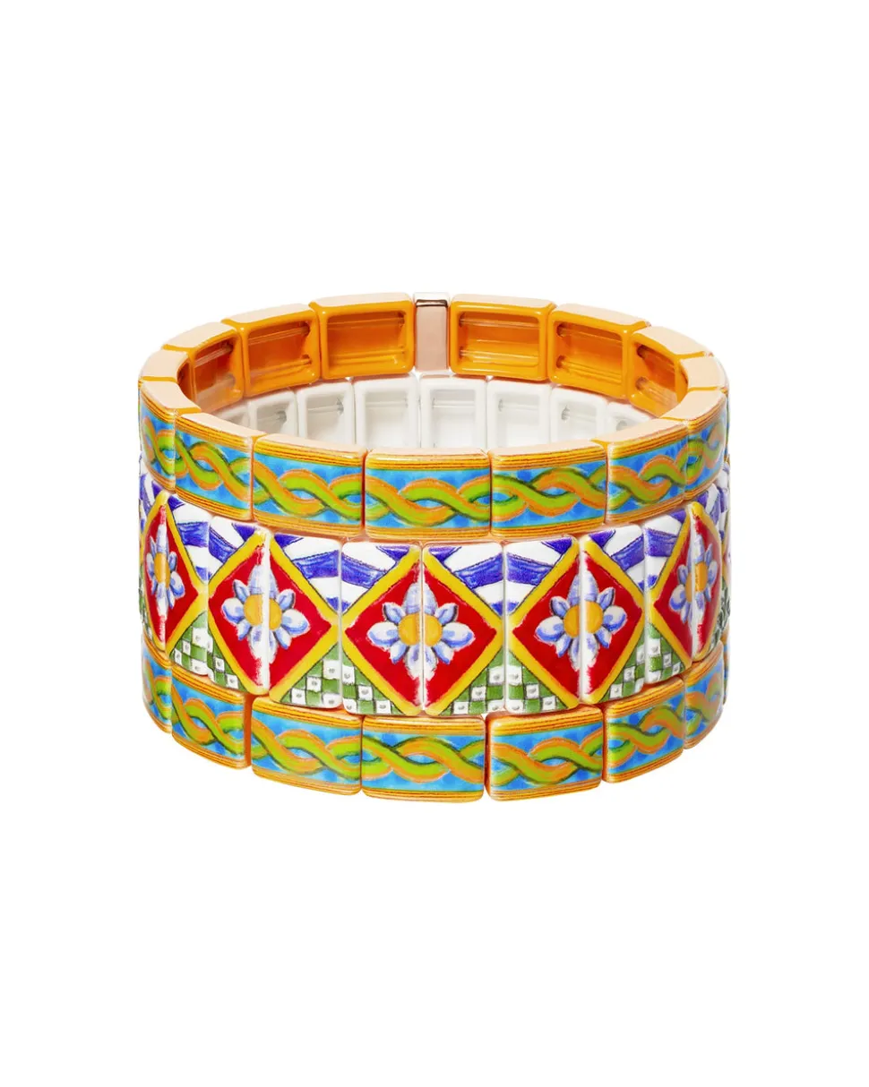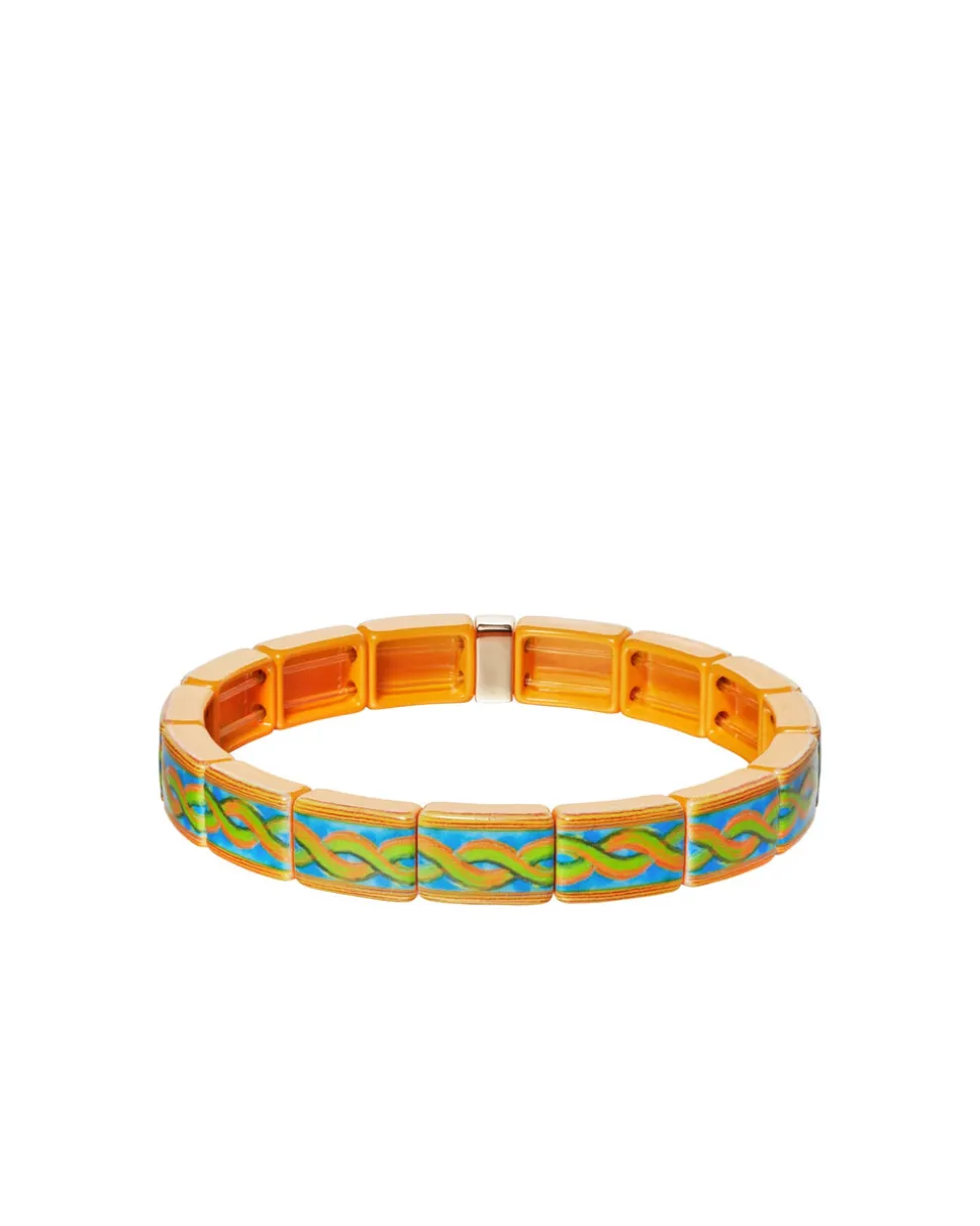 Whimsical, colorful, and crafted with tone-perfect details, Roxanne Assoulin’s four decades of experience—designing for the likes of Marc Jacobs and Oscar de la Renta—are expressed in every piece of her candy-inspired collection of bracelets, chokers, earrings, and more. As the brand likes to say, and as every “it” girl knows, it’s jewelry that makes you smile. Tile inspired, but make it chic…the Terrazzo Bracelet In Campania will bring colorful style to your everyday looks.