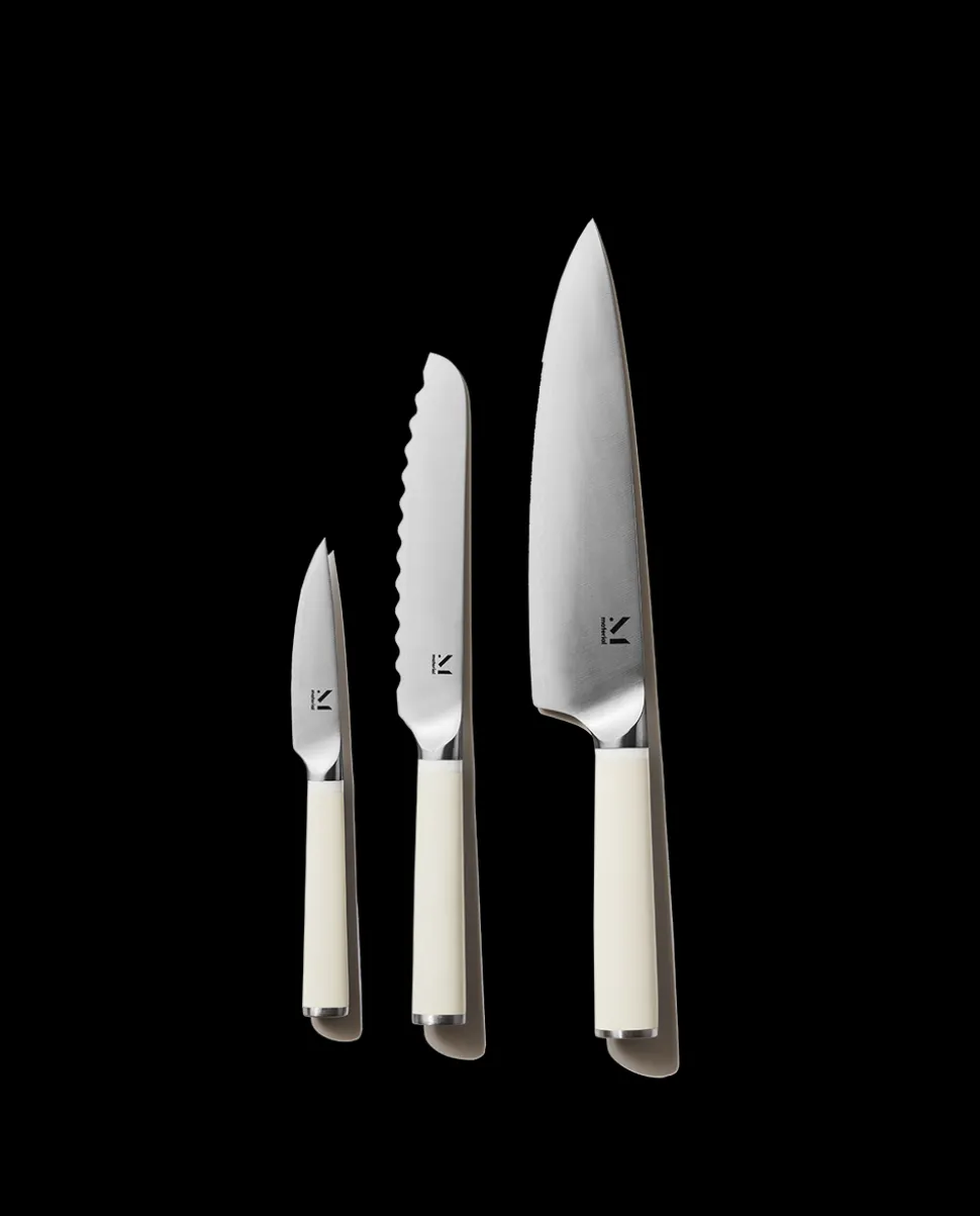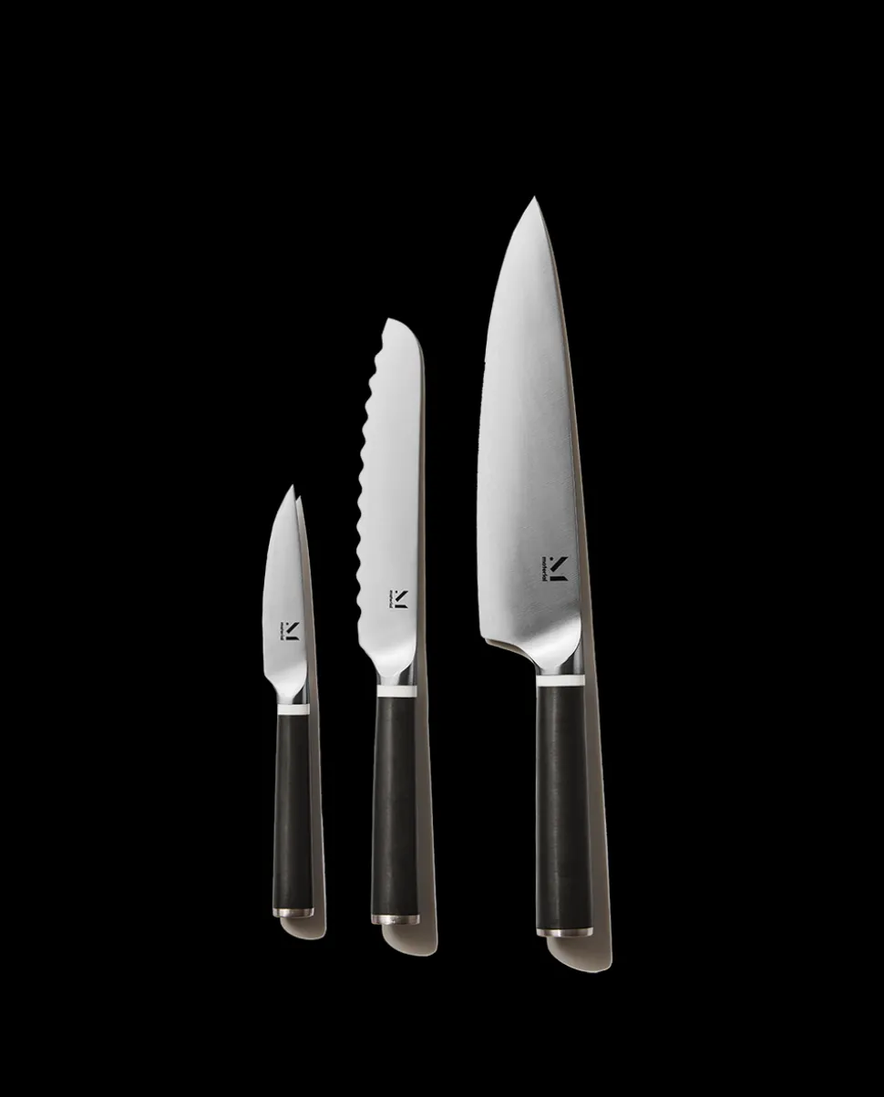 Set of 3. Japanese high-carbon and stainless steel, with a matte and stain-resistant composite handle.