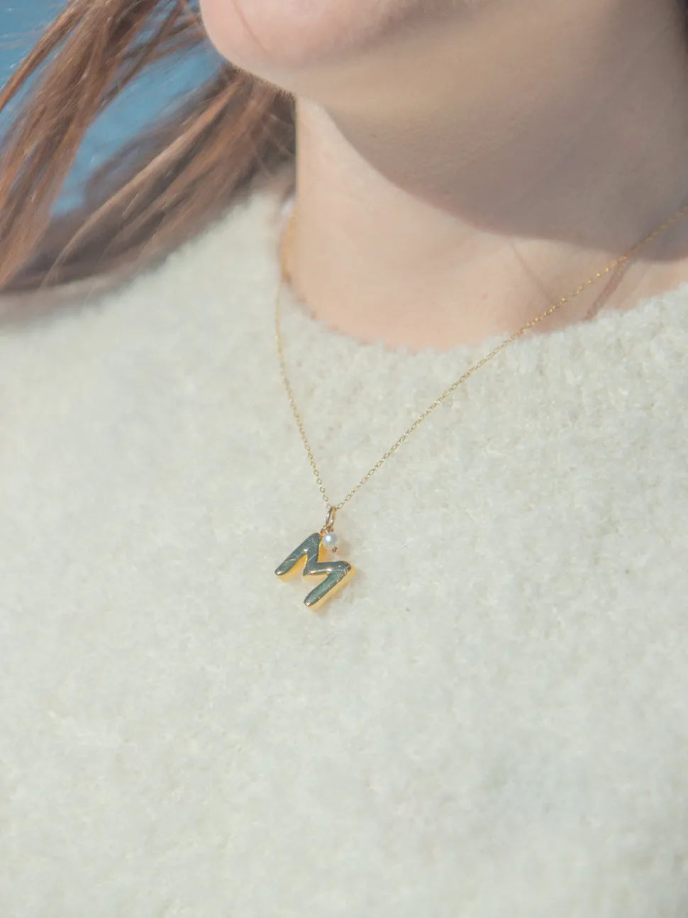 From Newport, Rhode Island, designer Kerry McGauley uses her experience in the fashion industry and inspiration from the town’s picturesque shoreline to craft singular yet timeless pieces—shining at the most memorable events and through your everyday. Showcase your initial or someone else’s with the gold-plated letter of the Tiff Custom Charm Necklace.