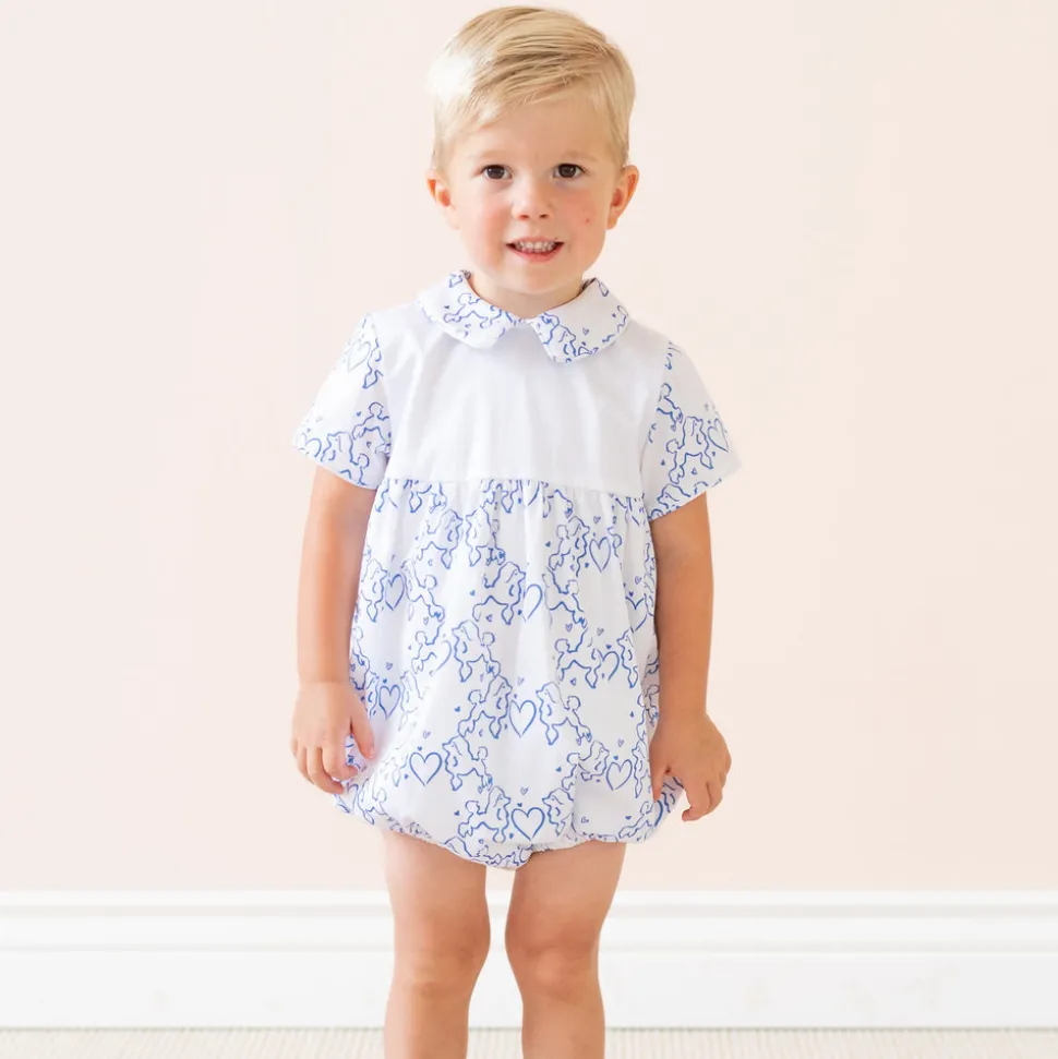 Inspired by the beauty of motherhood, Dondolo is a luxury lifestyle brand that provides beautiful, heirloom-quality clothing for generations to come. Each design is thoughtfully crafted in Colombia with ethical manufacturing, making every piece even more special. Ideal for Valentine’s Day and all his warm weather adventures, Romeo Boy Bubble is charming with its covered in playful print of blue poodles and hearts, and timeless Peter Pan collar. Meanwhile, snap closures along the stride make diaper changes super easy.